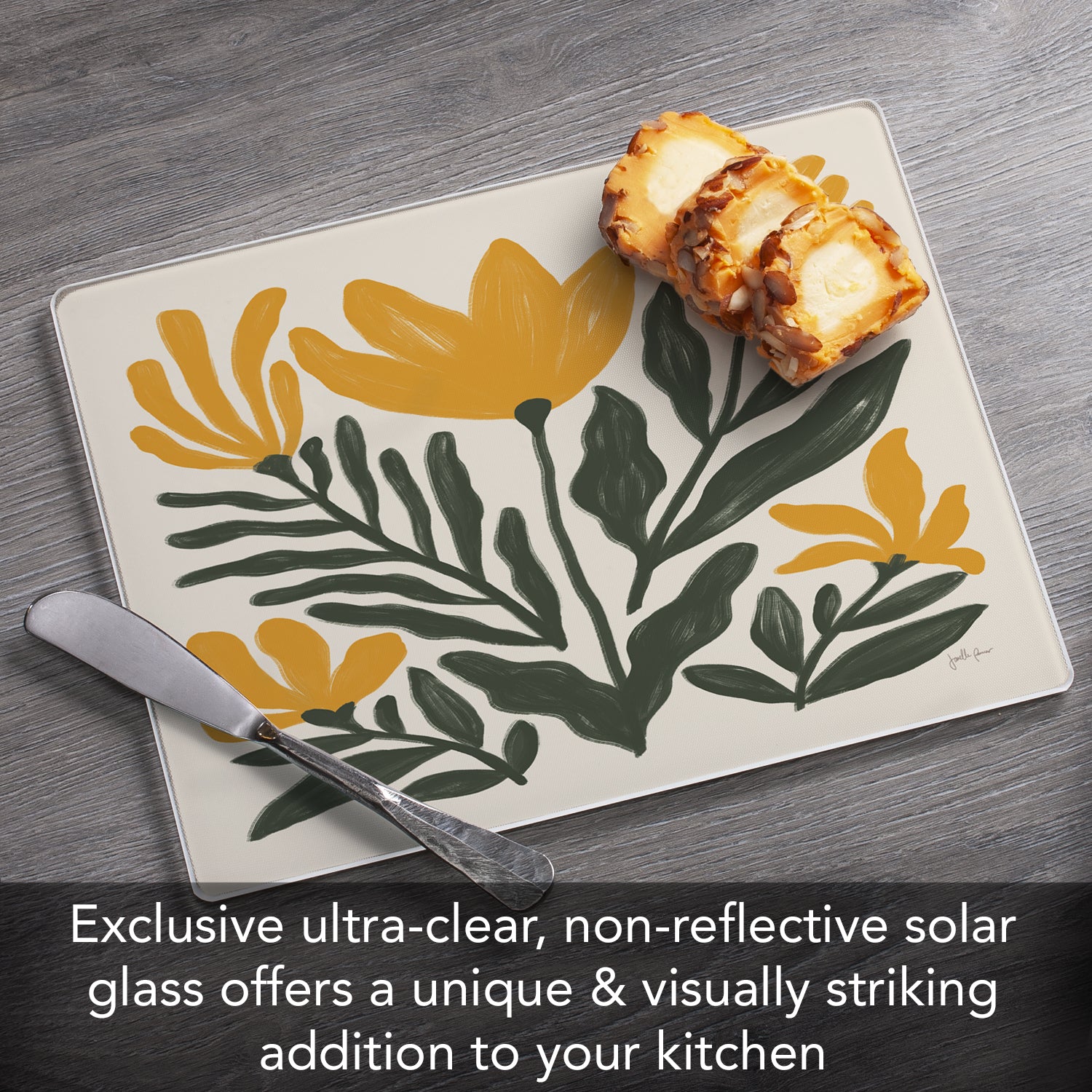 CounterArt Yellow Petals 3mm Tempered Glass Cutting Board 10” x 8” Manufactured in the USA