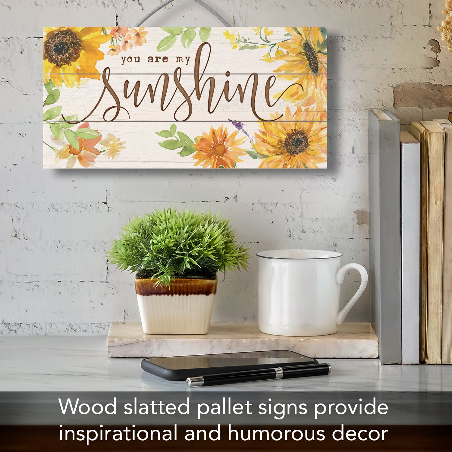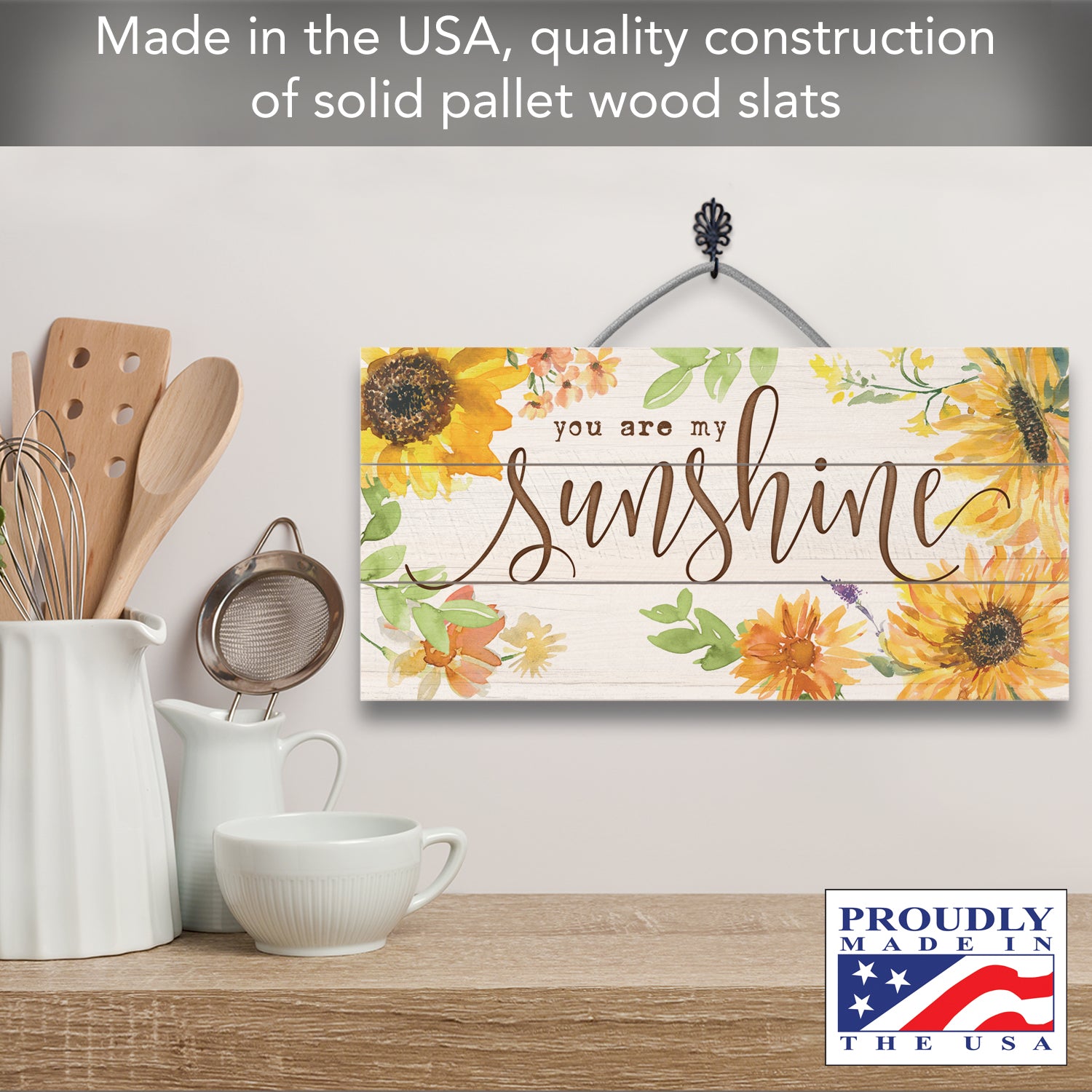 You Are My Sunshine Decorative Slatted Pallet Wood Sign 12" by 6" Made in the USA Wire Hanger Doubles as an Easel