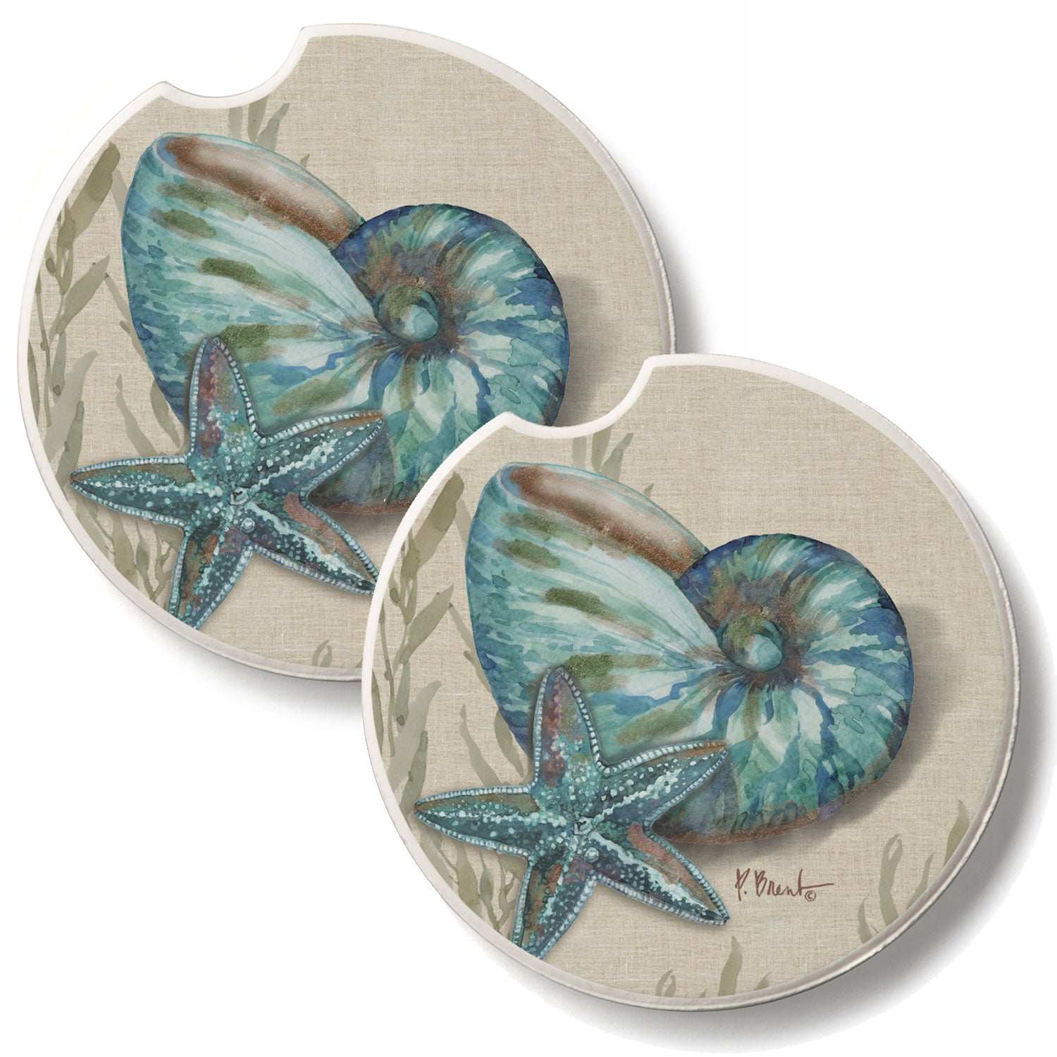 Crescent Conch 2 Pack Absorbent Stone Car Coasters 2.6" Manufactured in the USA