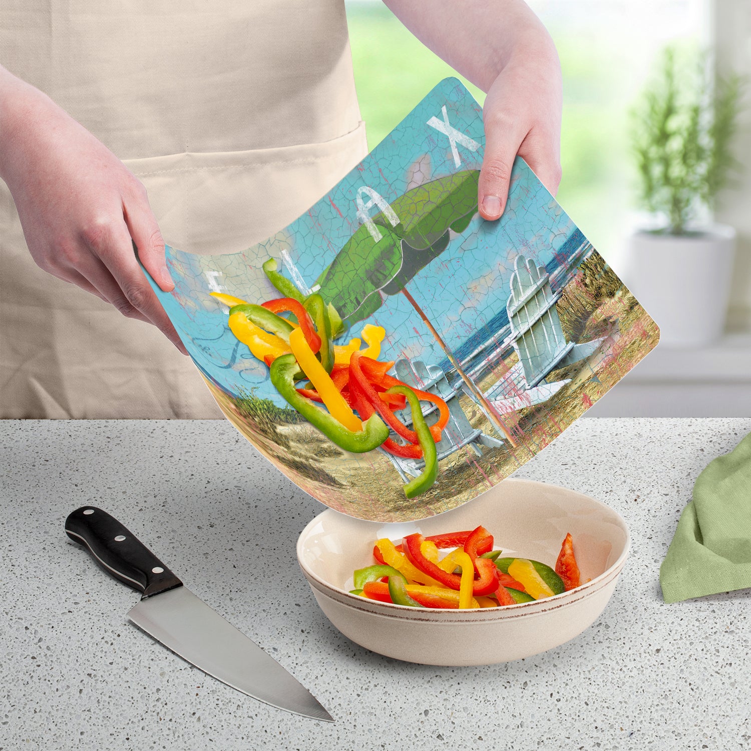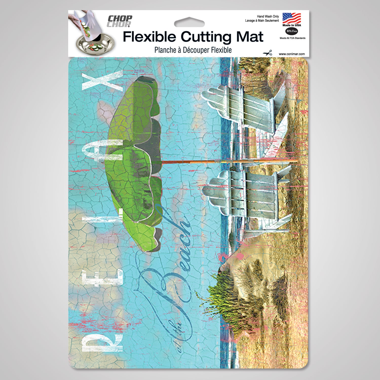 Cut N' Funnel Beach Day Designer Flexible Plastic Cutting Board Mat, 15" x 11.5", Made in the USA, Decorative, Flexible, Easy to Clean