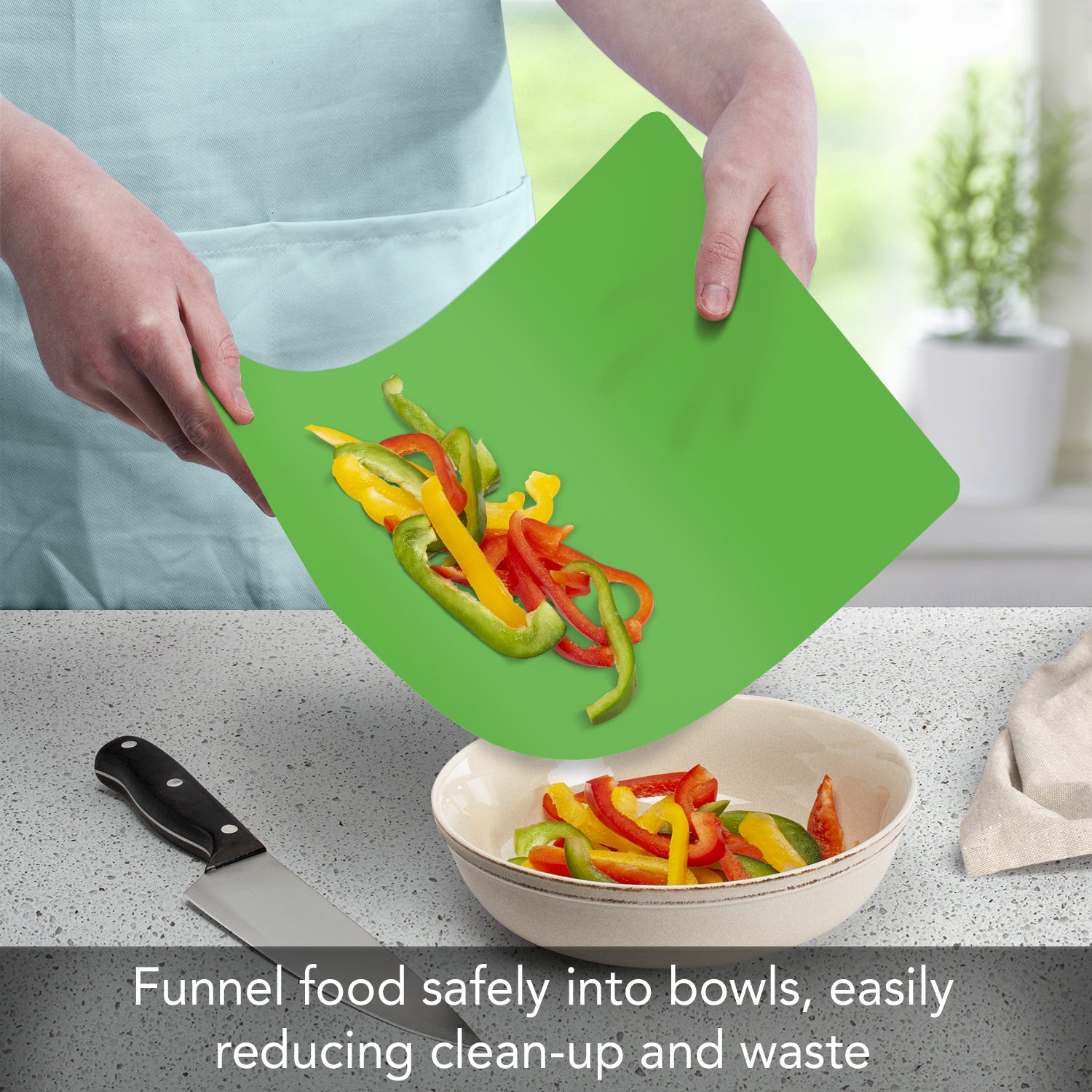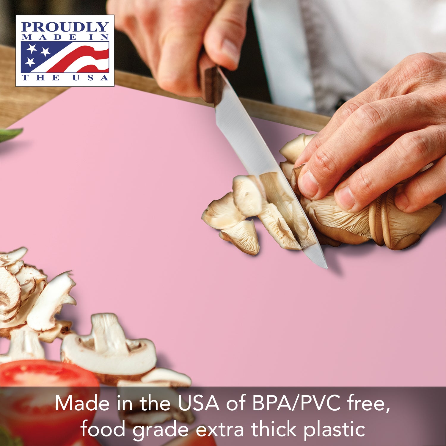 - CONSTRUCTION- Thick Cutting Board Mats are made of thick American made plastic. The strength of the plastic makes it easy to transfer chopped, sliced, or shredded food directly into a bowl, pan, or food processor.