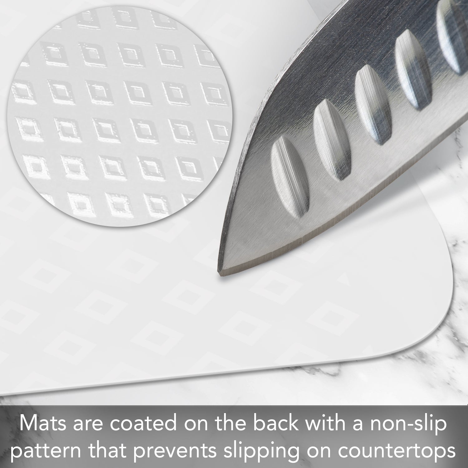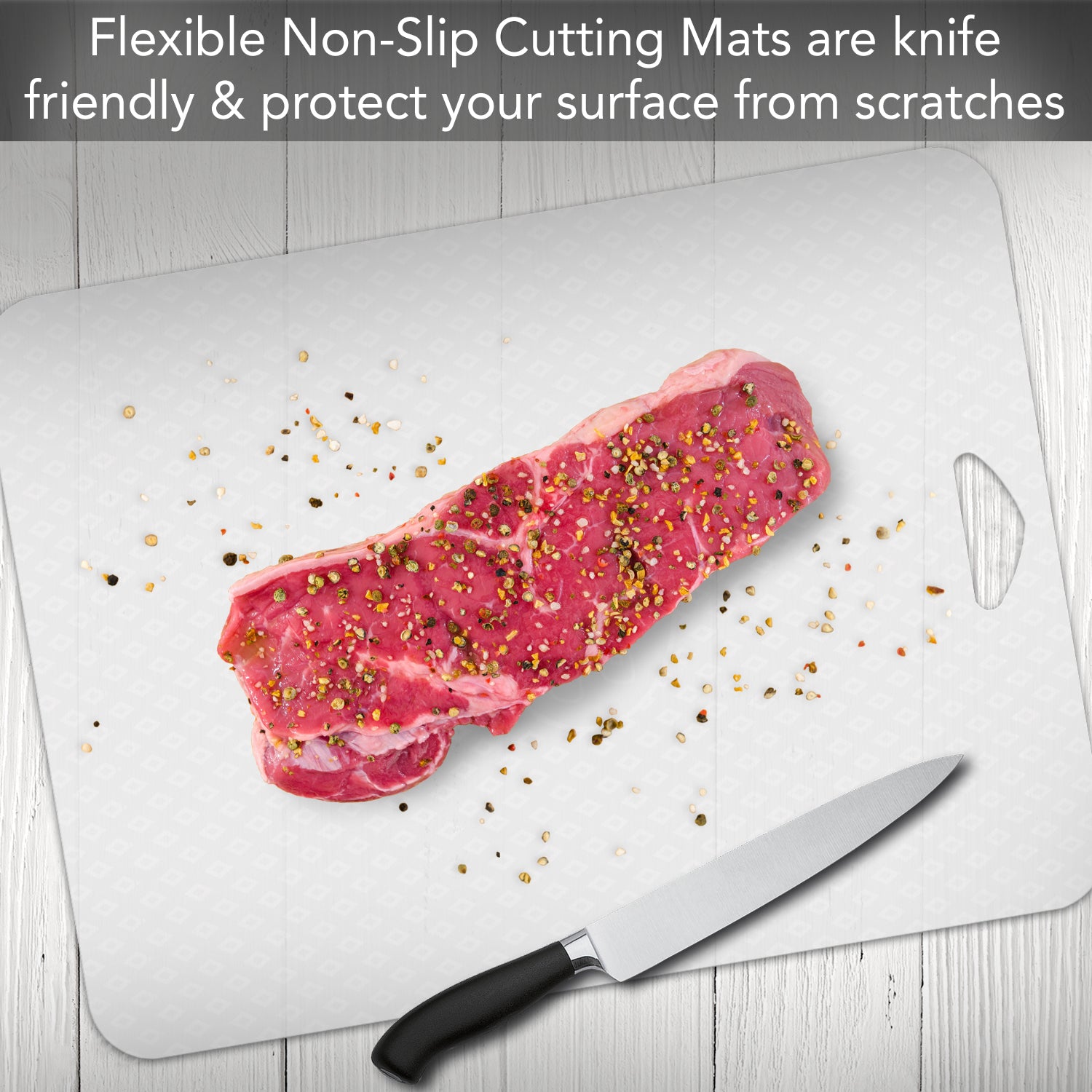 - KNIFE FRIENDLY-Flexible cutting board mat will not dull your favorite knives and provides a safe surface to chop, slice and cut foods. Great to use when cutting vegetables, fruits, or meats.