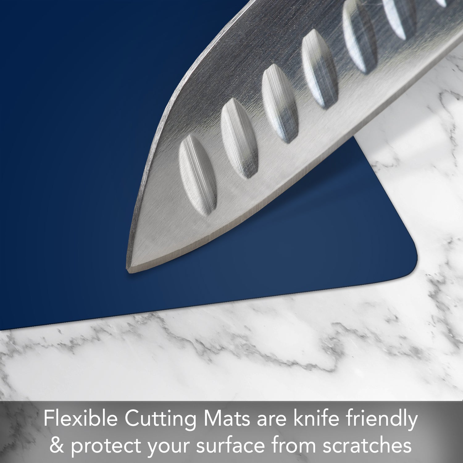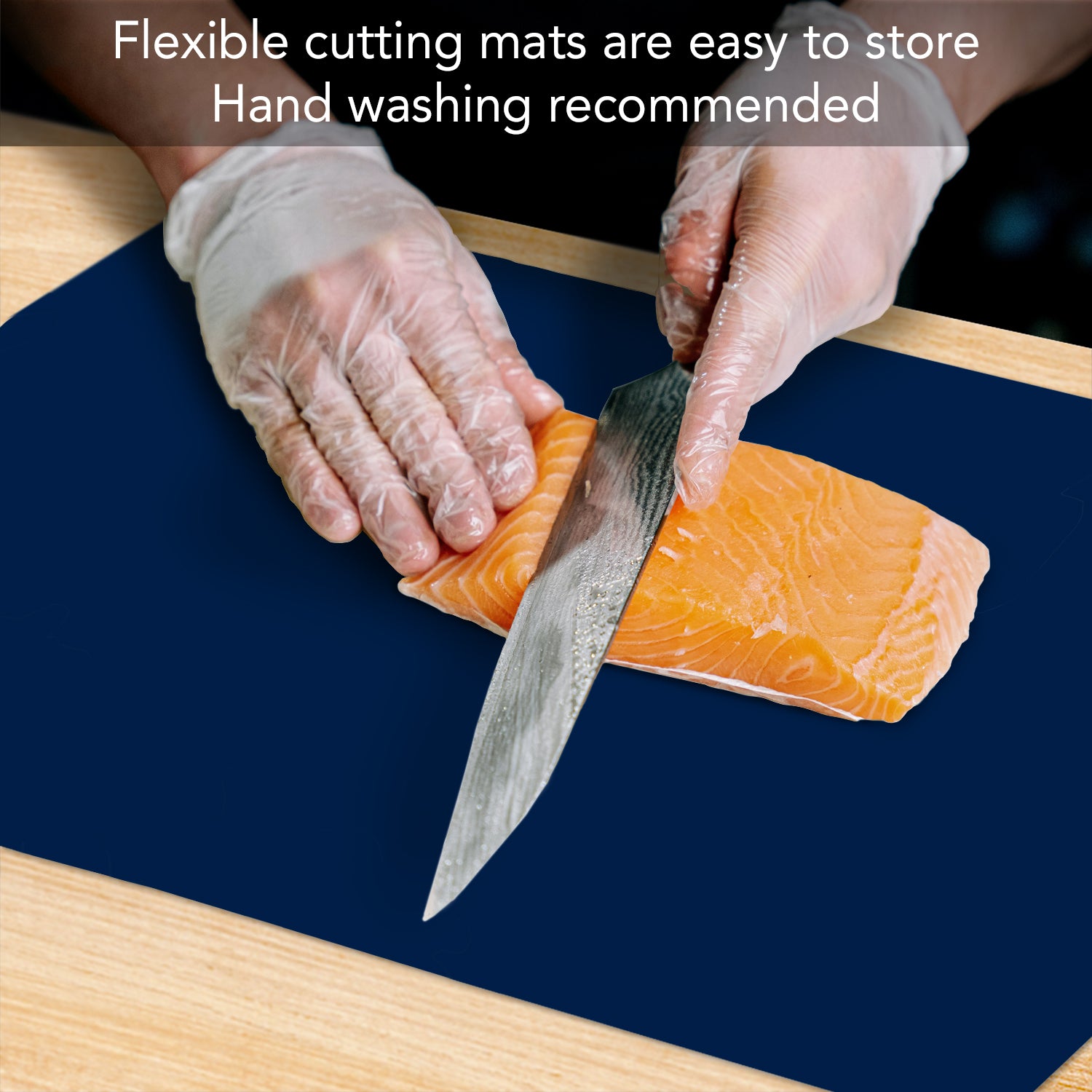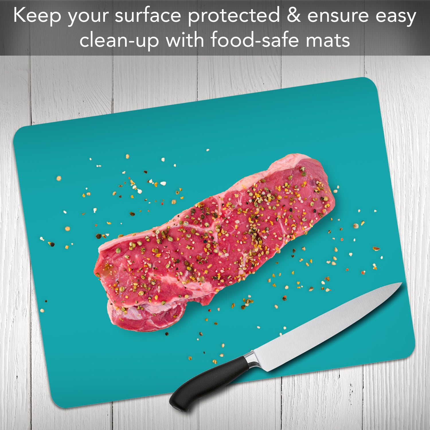 - PROTECTS SURFACES- Flexible Cutting Board Mats protect your countertops from scratches and stains. Mat provides a safe surface to chop, slice and cut foods without damaging your surfaces. Use during food preparation or when making a sandwich or snack.