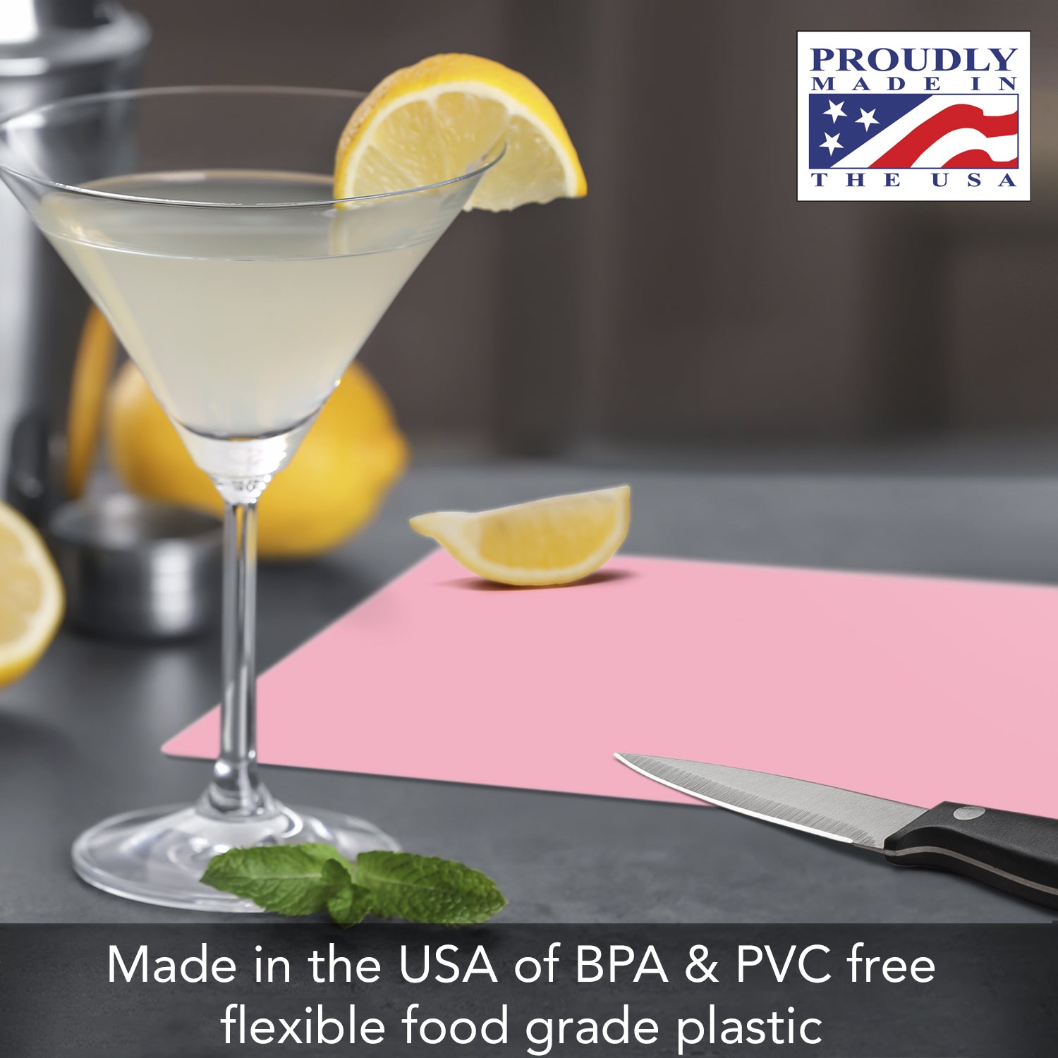 - CONSTRUCTION- Thick Cutting Board Mats are made of thick American made plastic. The strength of the plastic makes it easy to transfer chopped, sliced, or shredded food directly into a bowl, pan, or food processor.