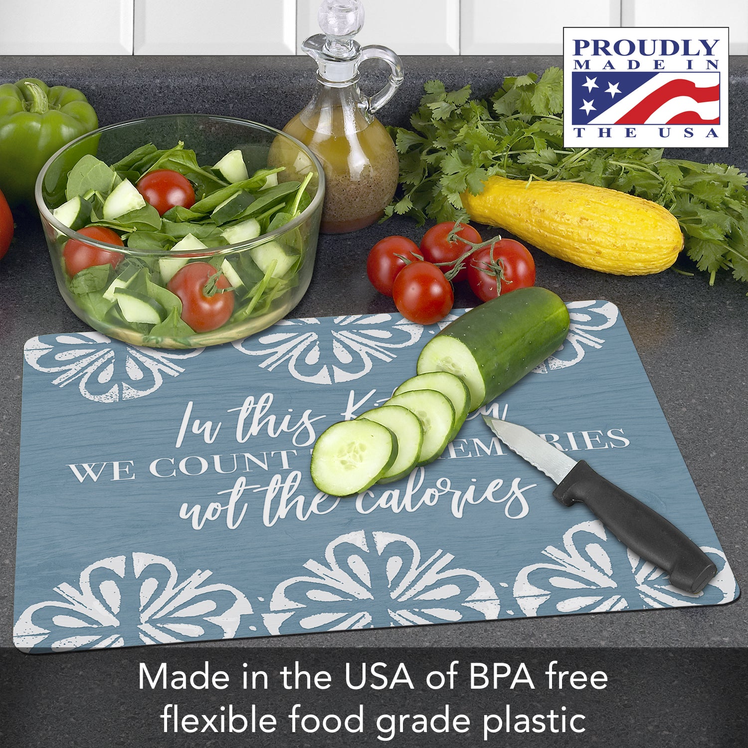 MADE IN THE USA-Our Cutting Board Mats are made in our Florida facility. Constructed of durable premium quality BPA & PVC free plastic. Each Cutting Board Mat purchase supports hard-working American families and local communities.