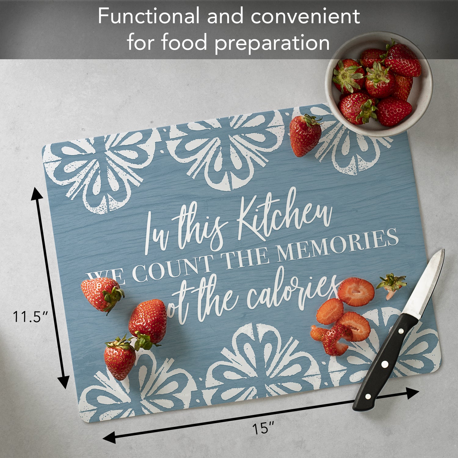 FUNCTIONAL ART-Beautiful artistic design allows this Cutting Board Mat to fit into any Home Interior Design. We work with some of the leading Artists in the industry to create artistic designs that will add beauty and distinction to your space.