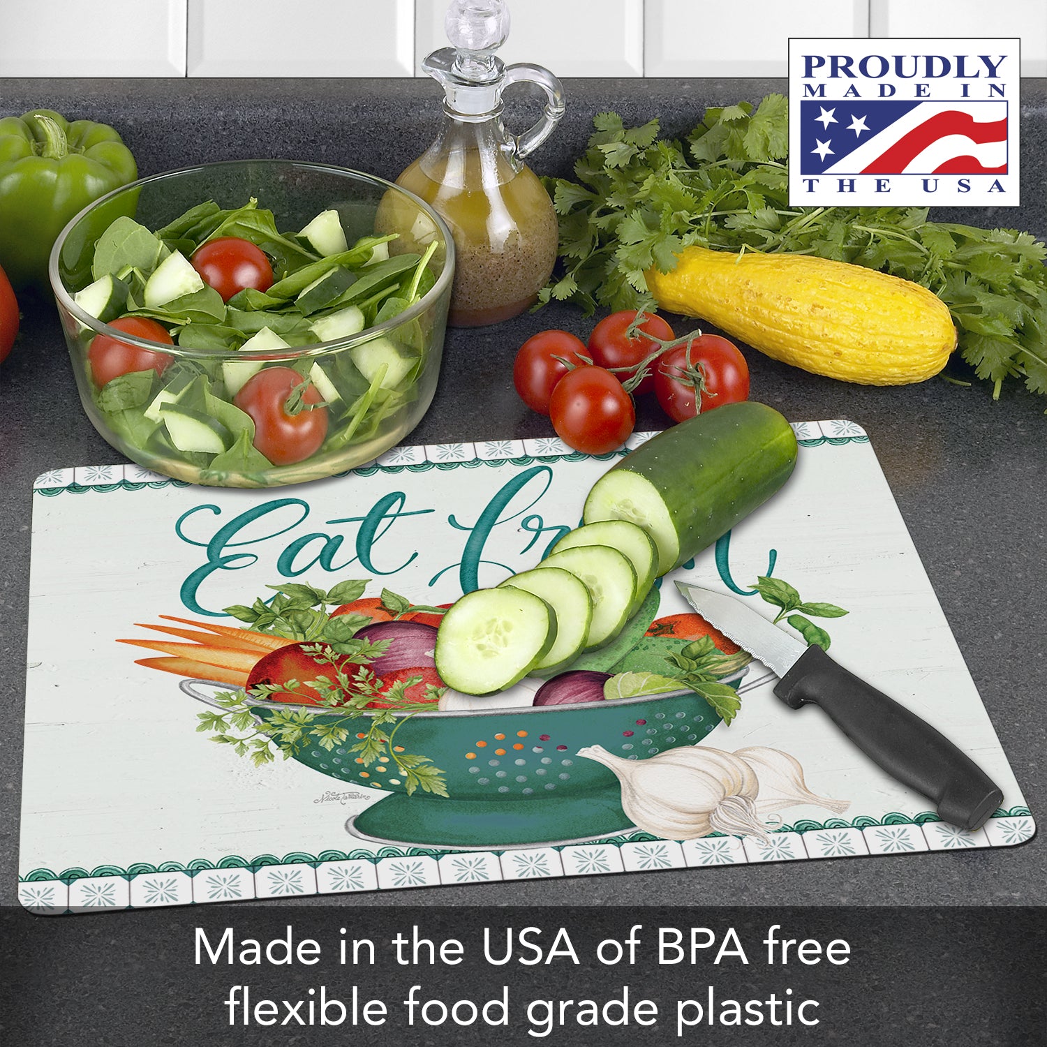 MADE IN THE USA-Our Cutting Board Mats are made in our Florida facility. Constructed of durable premium quality BPA & PVC free plastic. Each Cutting Board Mat purchase supports hard-working American families and local communities.