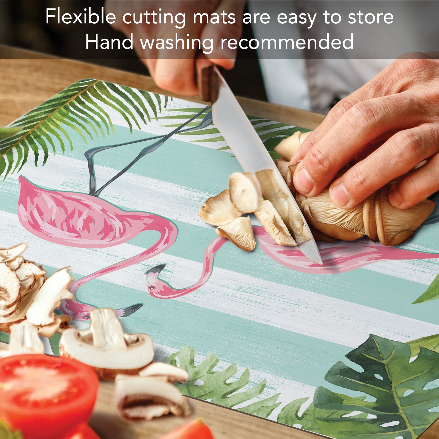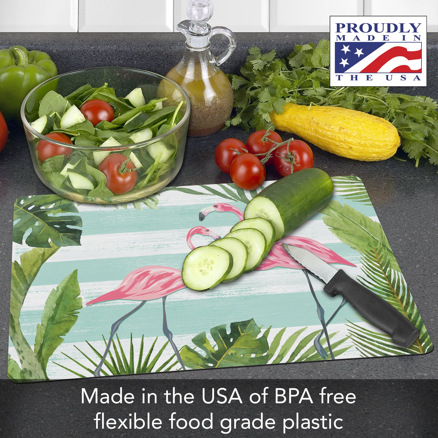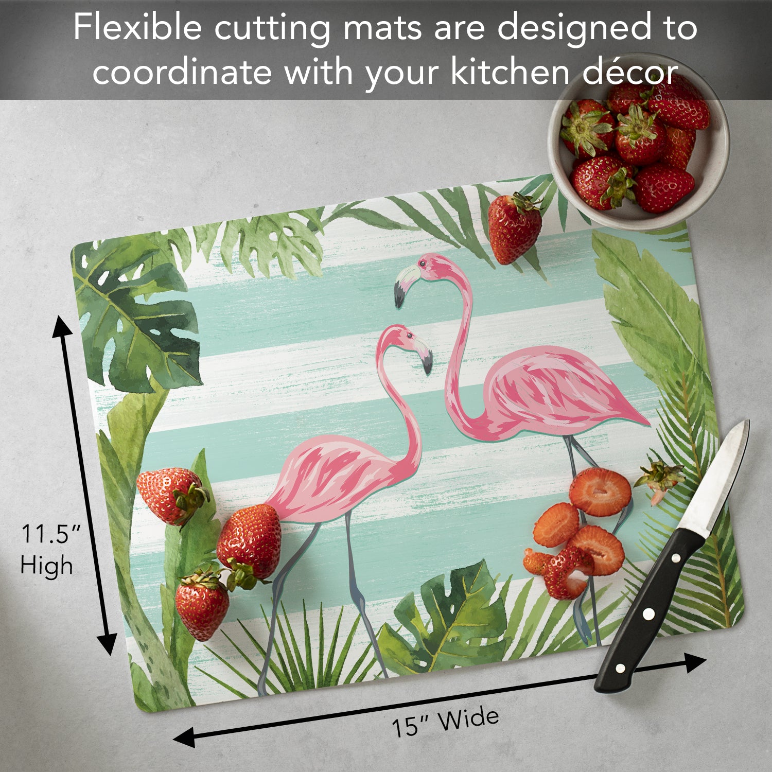 Cut N' Funnel Flamingos & Stripes Designer Flexible Plastic Cutting Board Mat, 15" x 11.5"