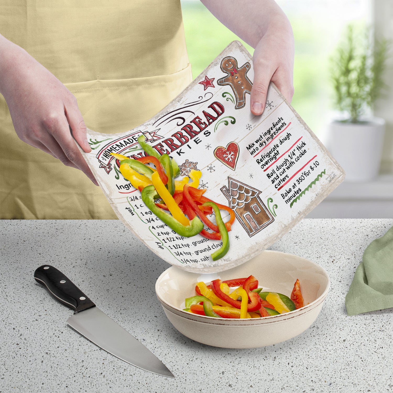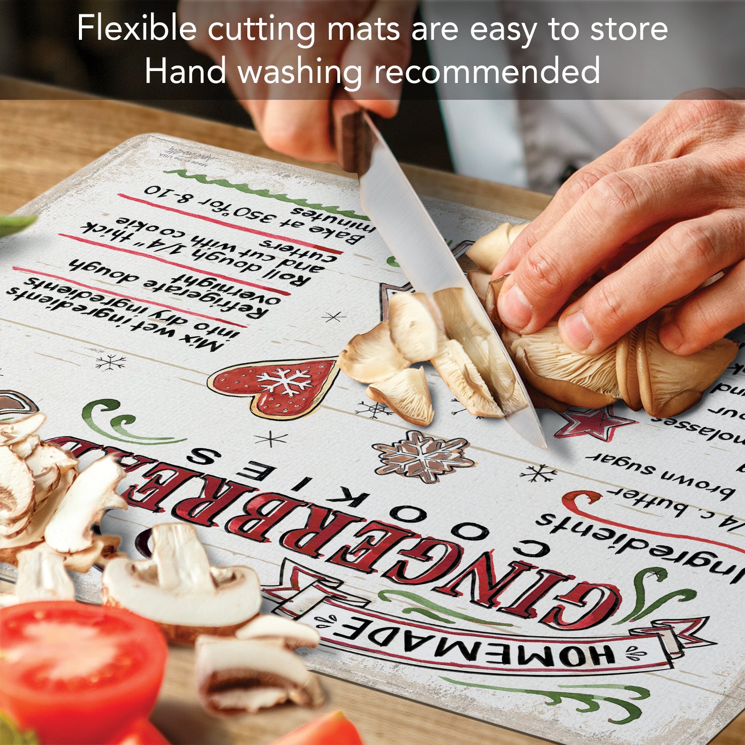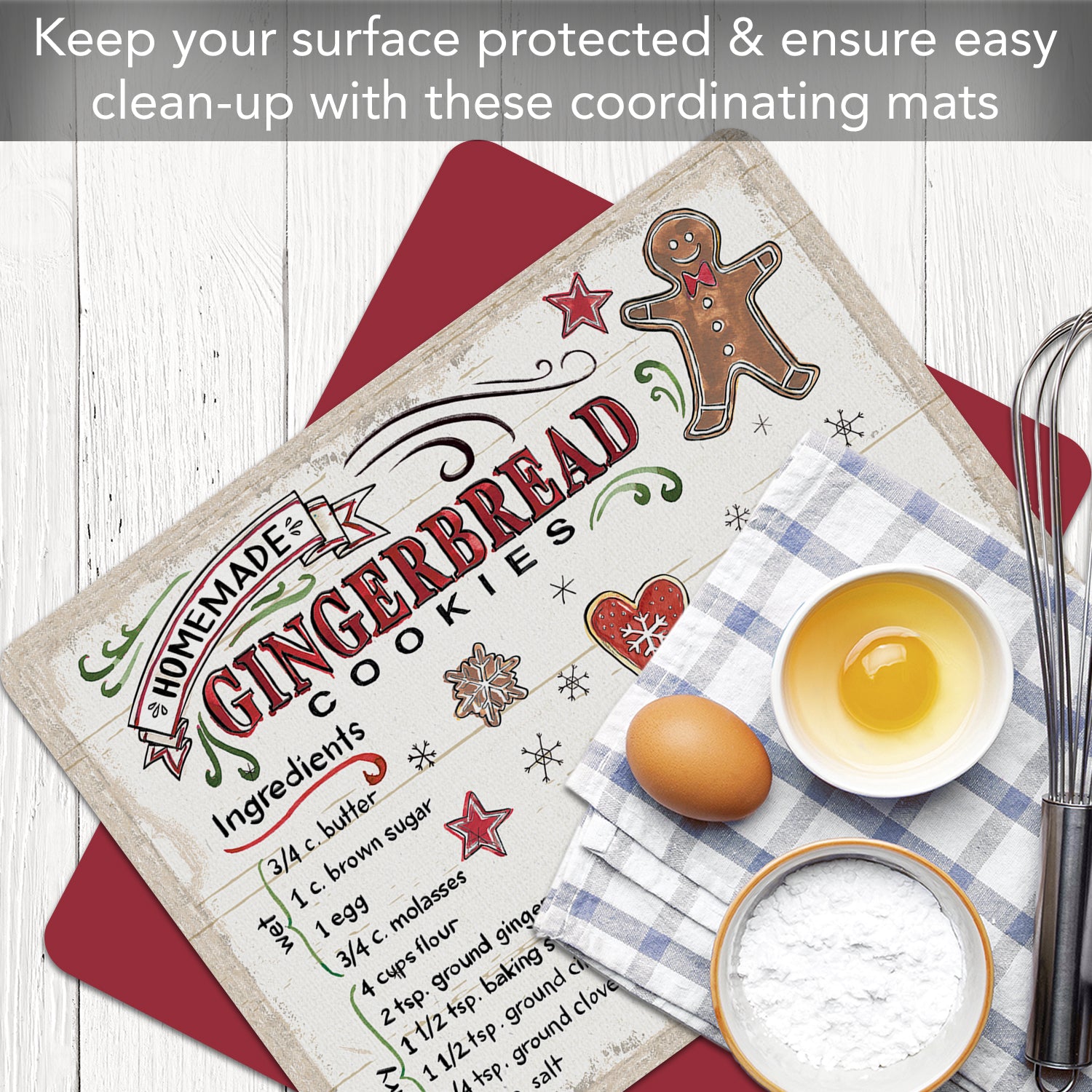 Cut N' Funnel Gingerbread/Dark Red 2 Pack Designer Flexible Plastic Cutting Board Mat with Coordinating Solid Flex Mat 15" x 11.5", Made in the USA, Decorative, Flexible, Easy to Clean