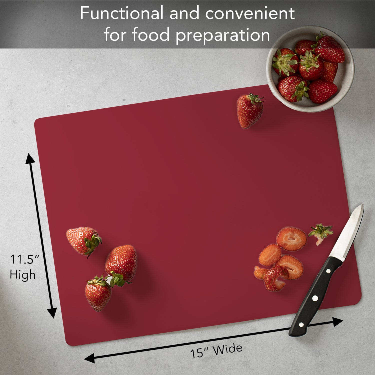 - PROTECTS SURFACES- Flexible Cutting Board Mat works great to protect your counter tops and surfaces from scratches and stains. Use our Cutting Board Mats to keep counters clean when just making a sandwich or snack. Then you can easily pick up the mat and get rid of those crumbs without having to clean the whole counter.