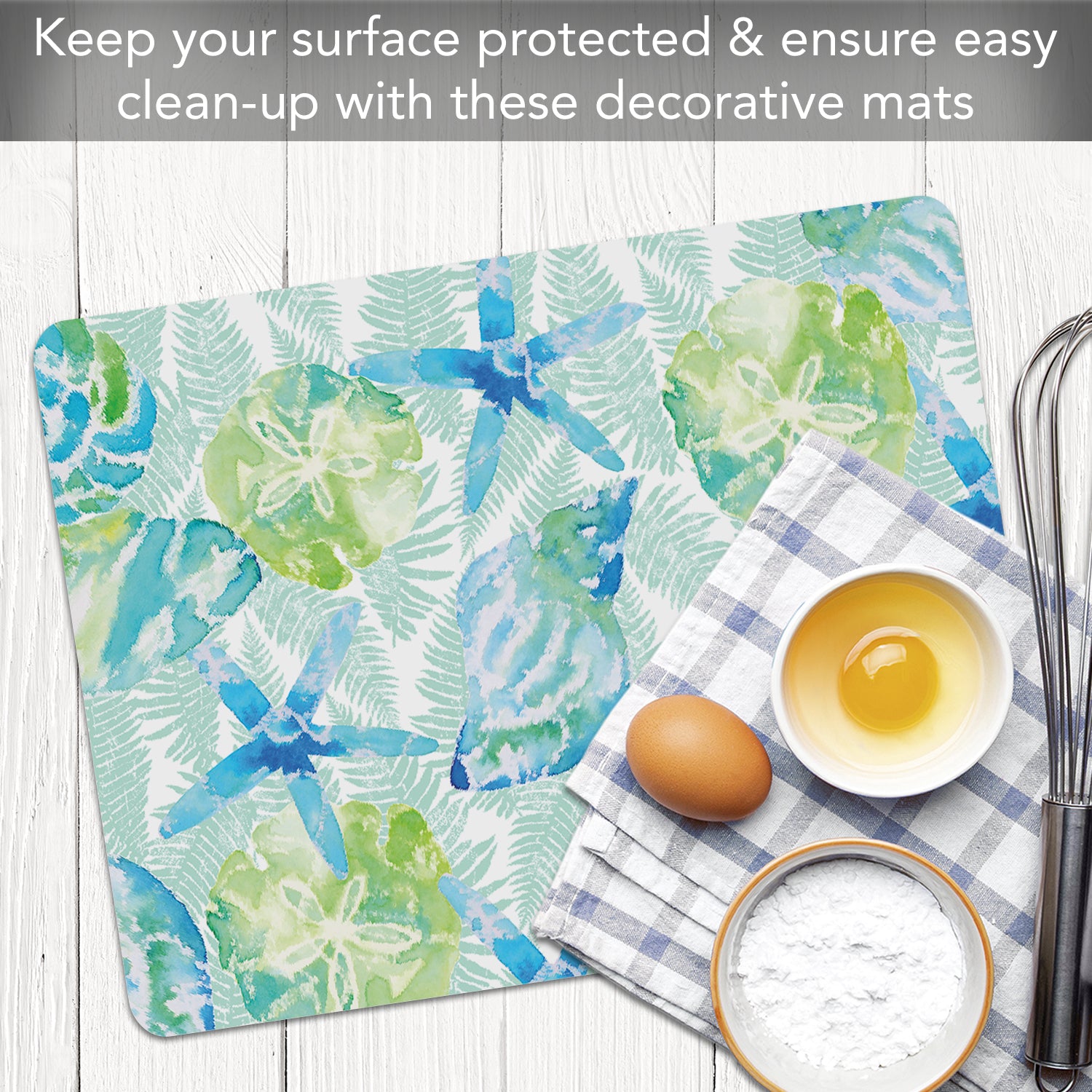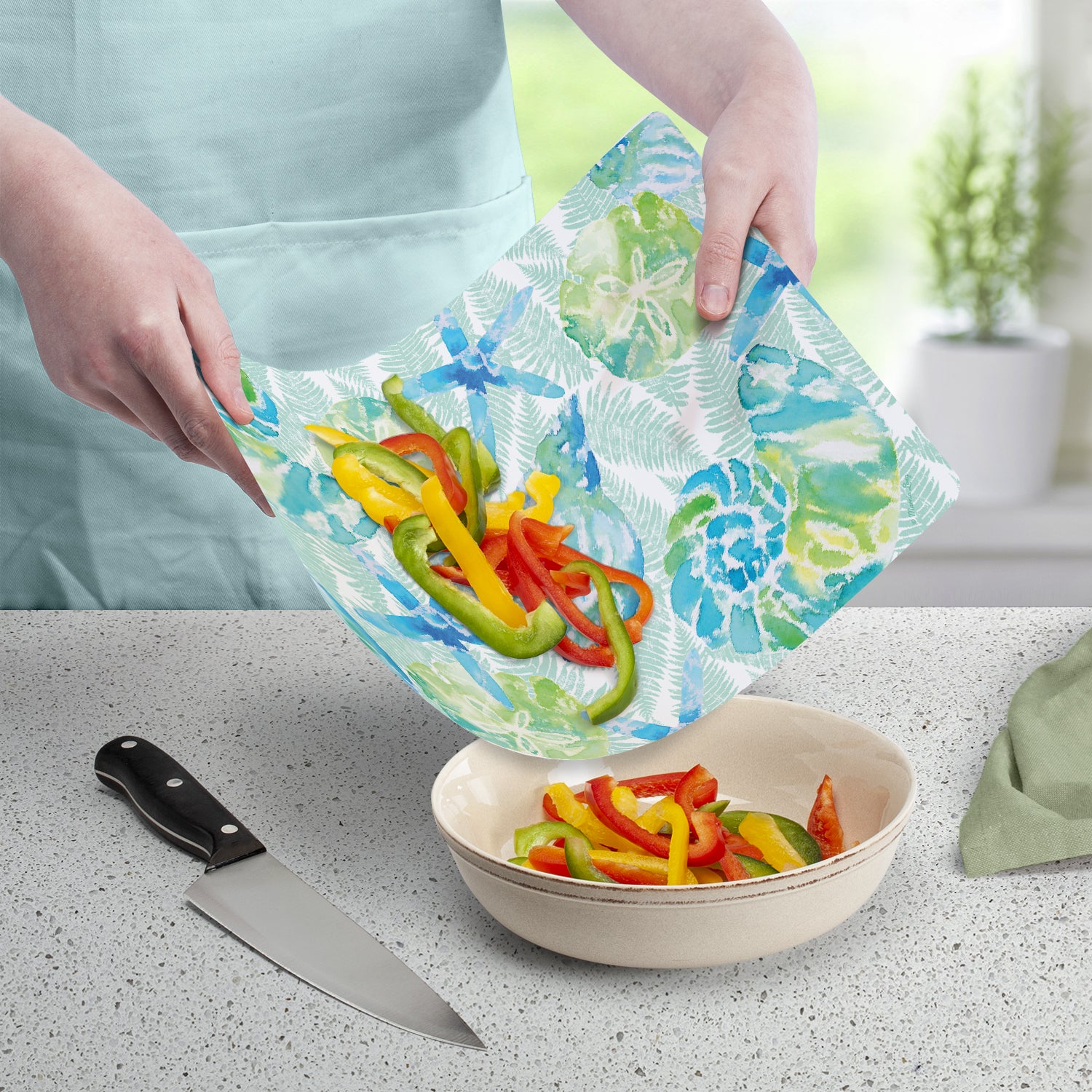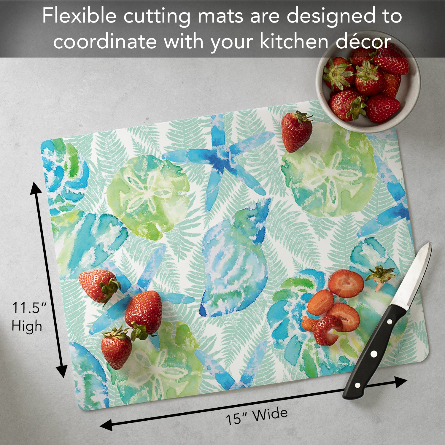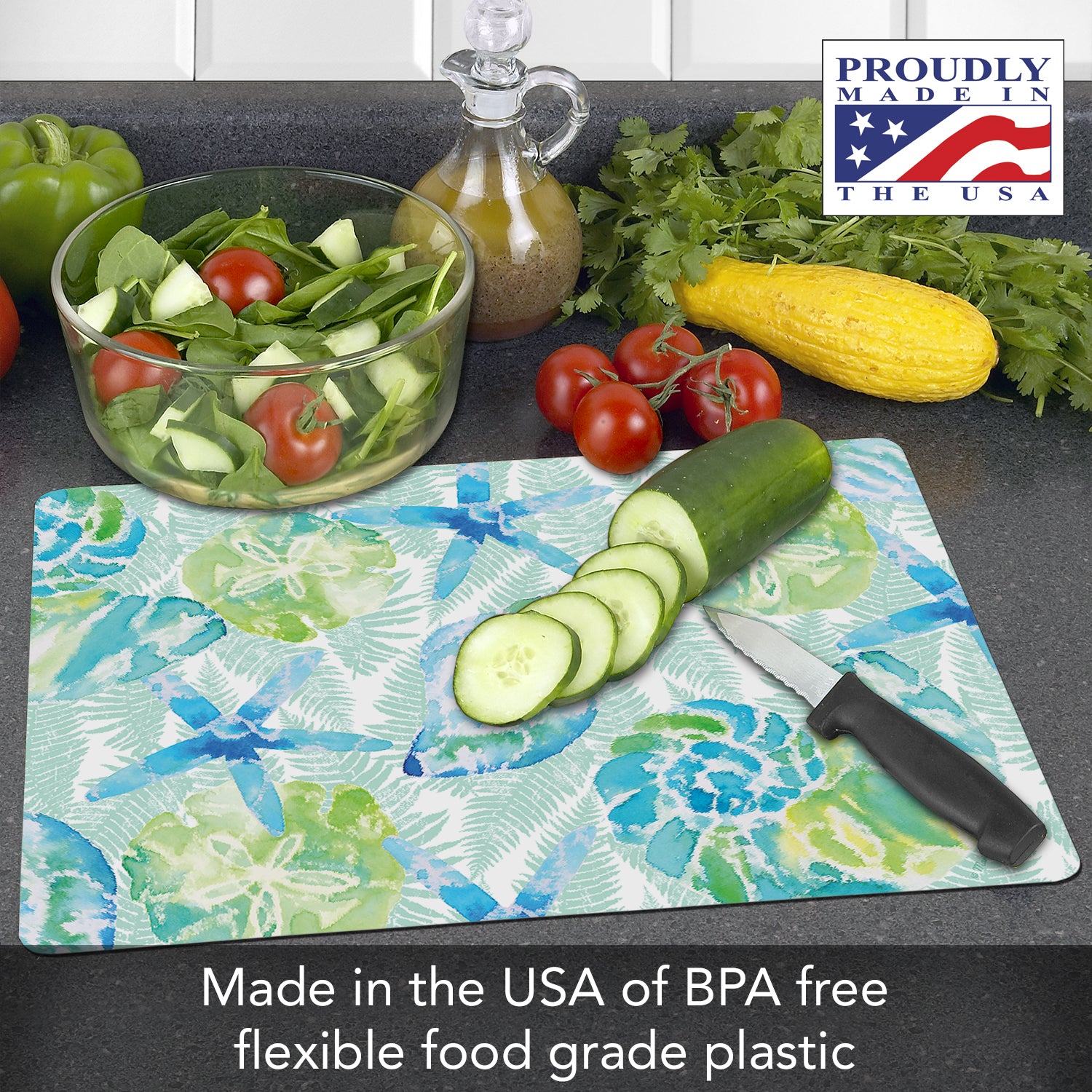 Cut N' Funnel Isla Mona Coastal Designer Flexible Plastic Cutting Board Mat 15" x 11.5", Made in the USA, Decorative, Flexible, Easy to Clean