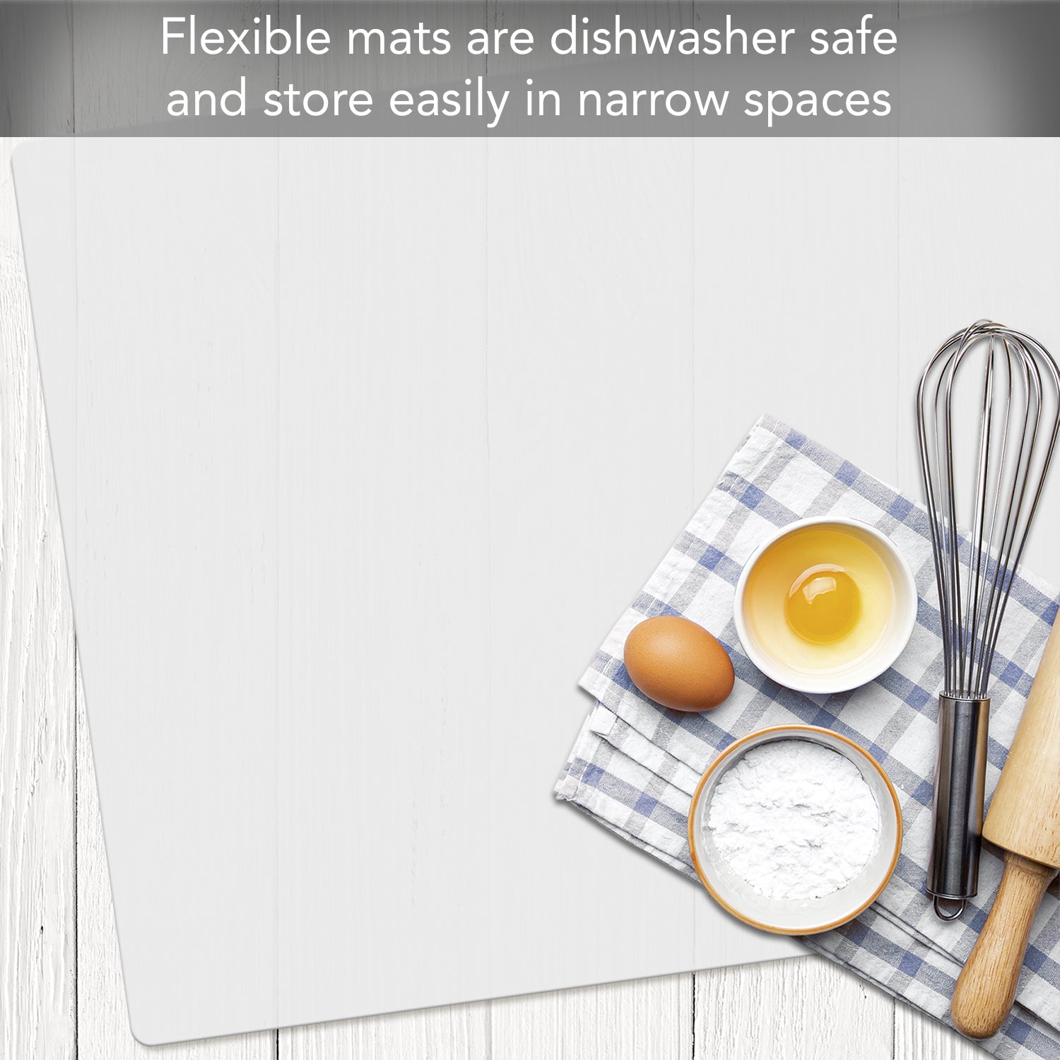 - PROTECTS SURFACES- Flexible Cutting Board Mats protect your countertops from scratches and stains. Mat provides a safe surface to chop, slice and cut foods without damaging your surfaces. Use during food preparation or when making a sandwich or snack.