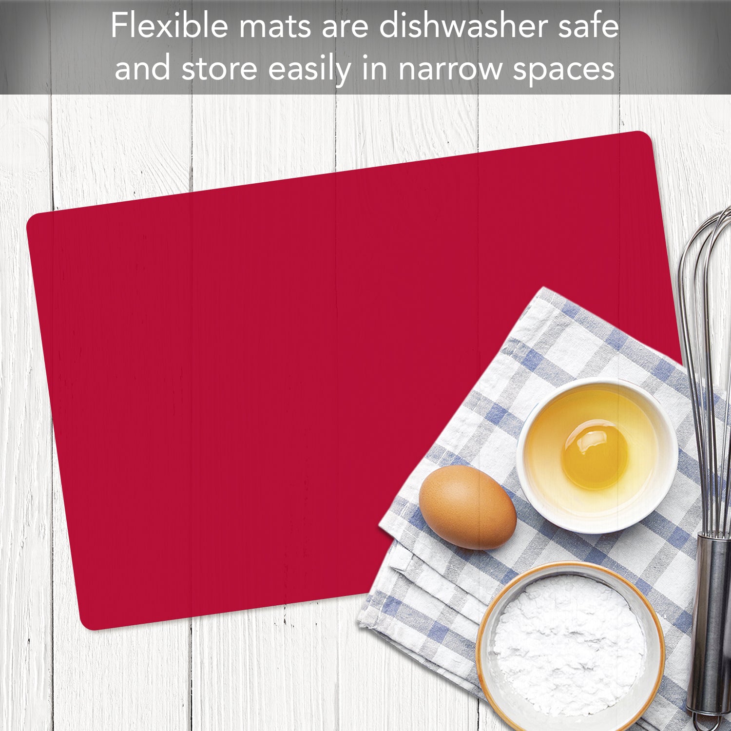 - PROTECTS SURFACES- Flexible Cutting Board Mats protect your countertops from scratches and stains. Mat provides a safe surface to chop, slice and cut foods without damaging your surfaces. Use during food preparation or when making a sandwich or snack.