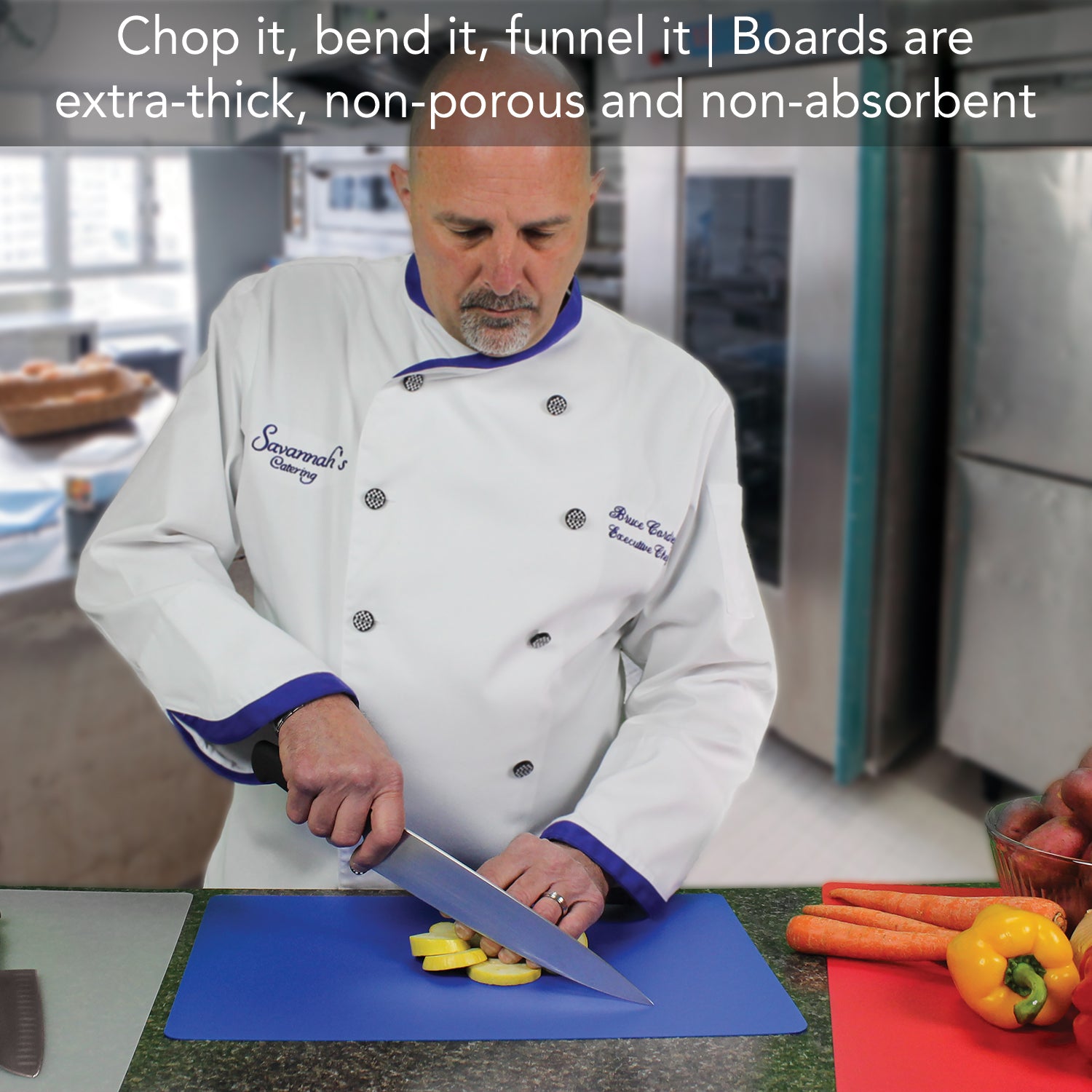 Cut N' Funnel Food Service Grade Flexible Plastic Cutting Mat 4 Pack, Multi-Color, Made in the USA 18" x 12" BPA Free Dishwasher Safe