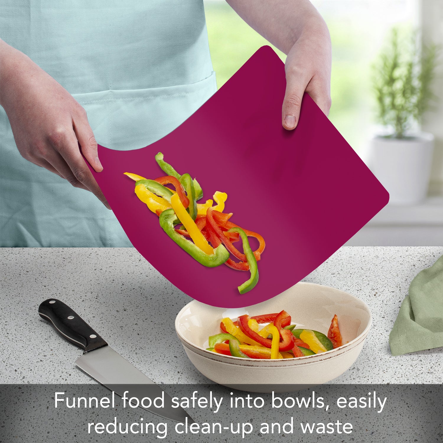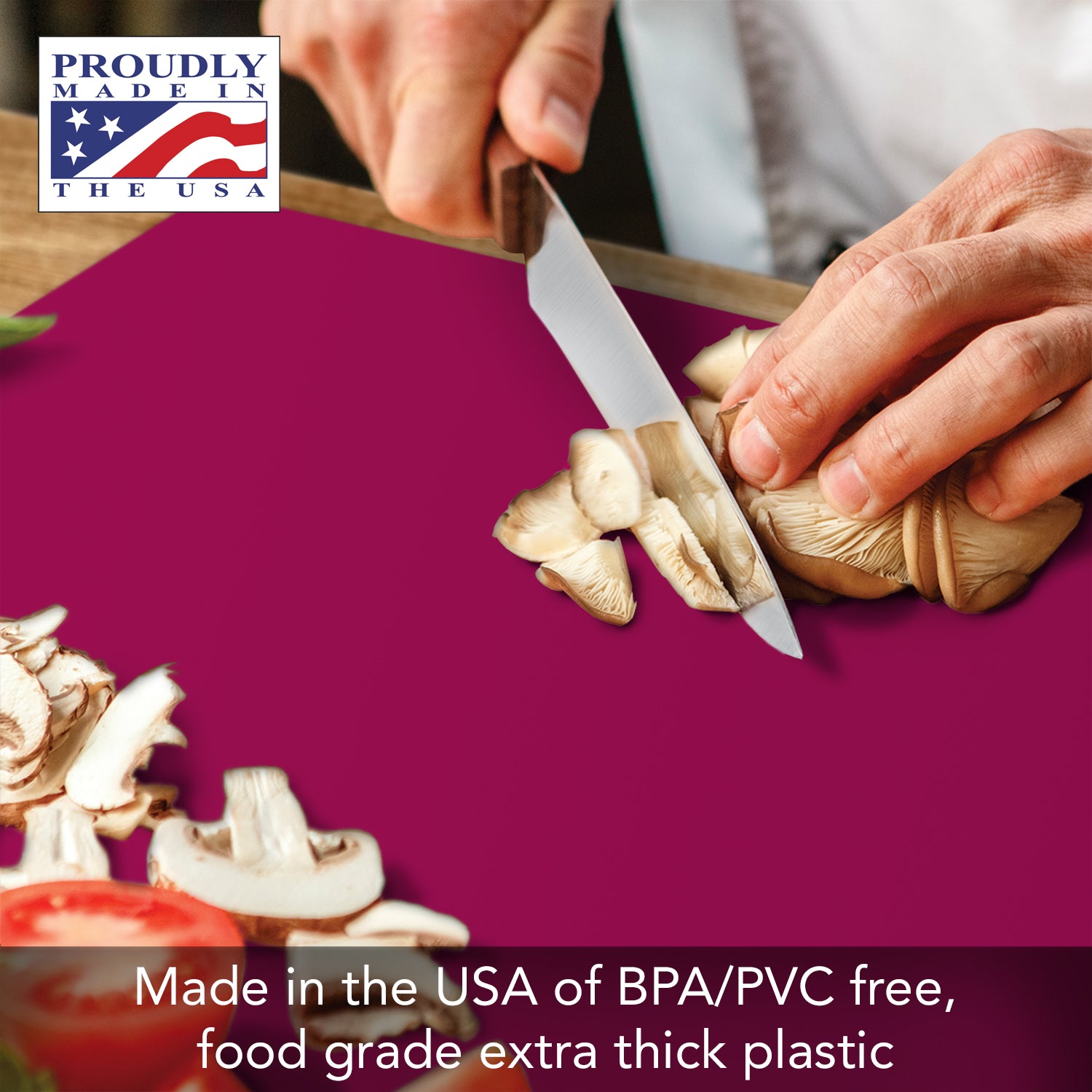 - CONSTRUCTION- Thick Cutting Board Mats are made of thick American made plastic. The strength of the plastic makes it easy to transfer chopped, sliced, or shredded food directly into a bowl, pan, or food processor.
