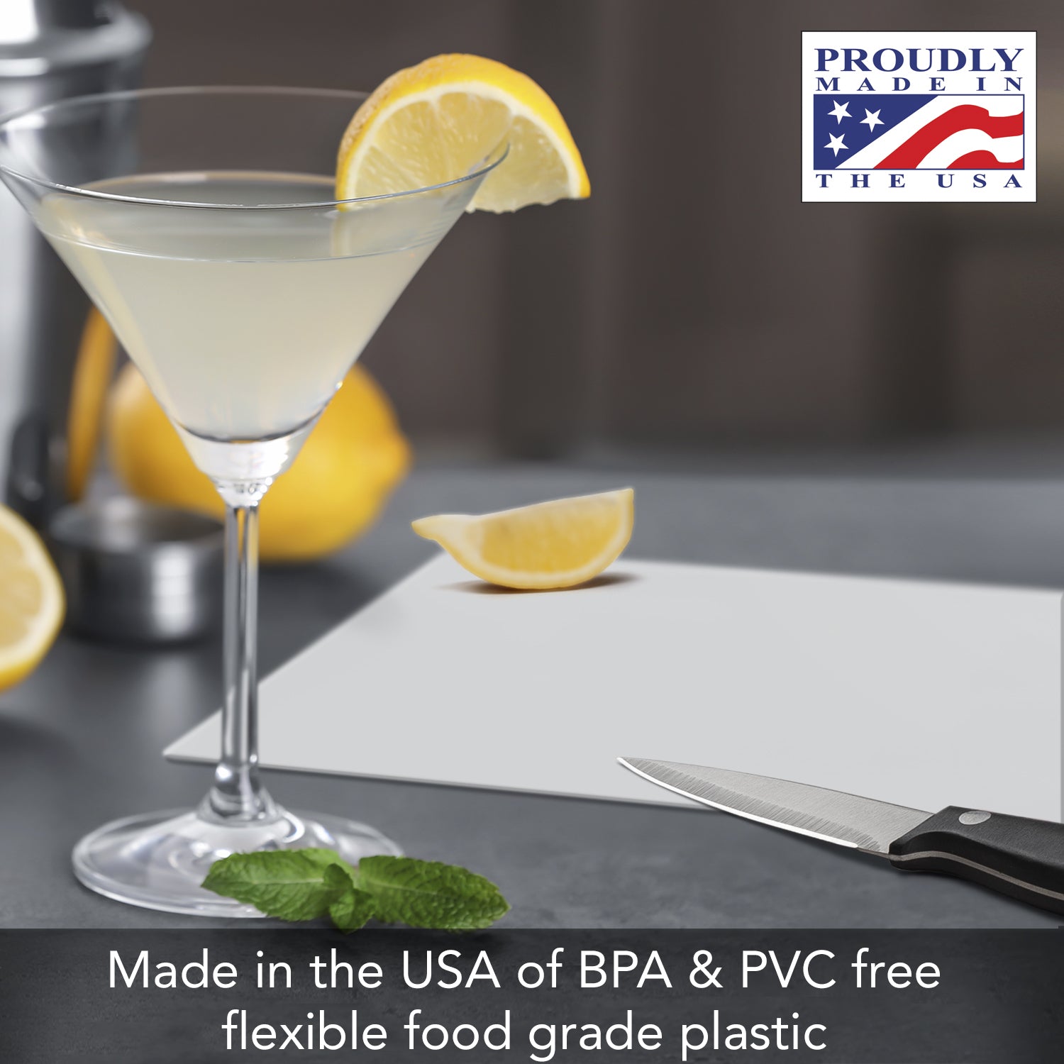- CONSTRUCTION- Thick Cutting Board Mats are made of thick American made plastic. The strength of the plastic makes it easy to transfer chopped, sliced, or shredded food directly into a bowl, pan, or food processor.
