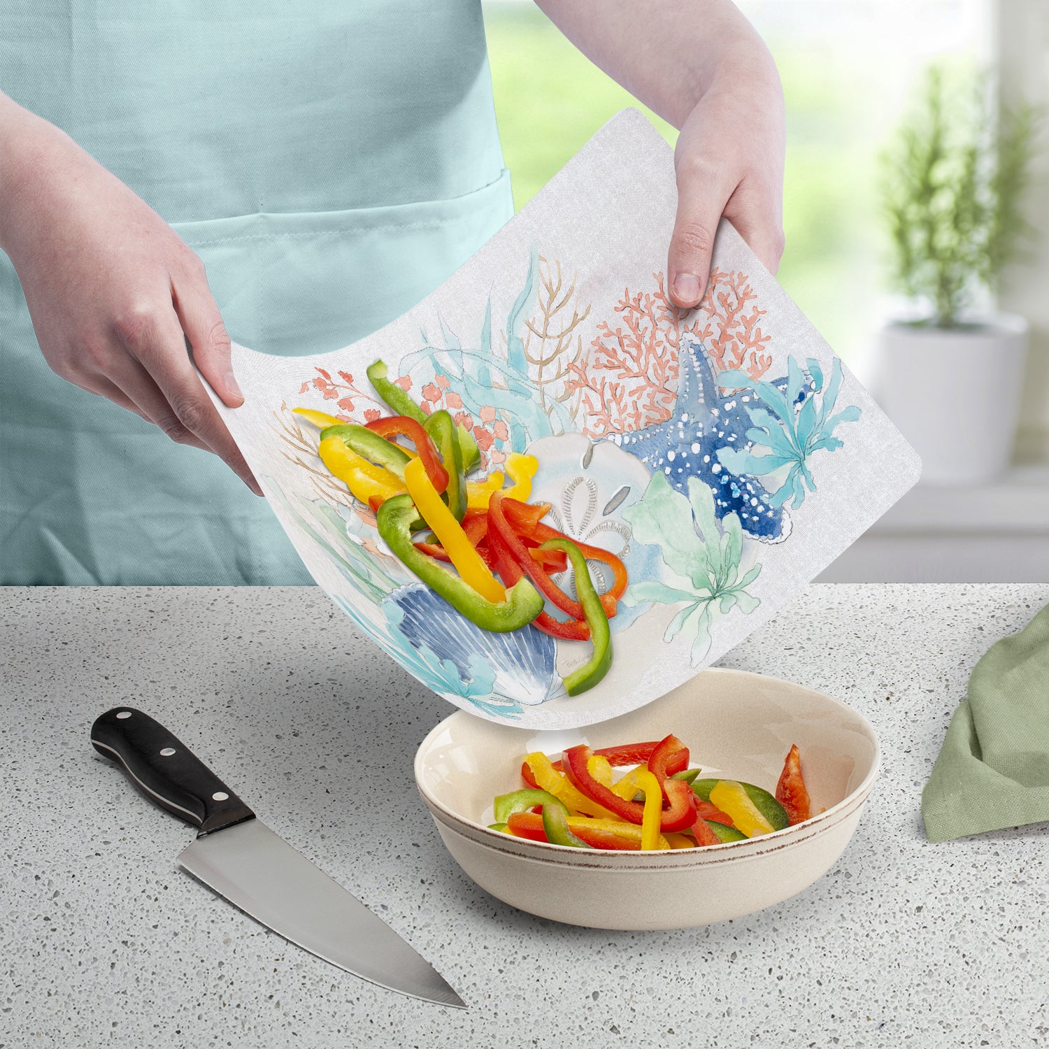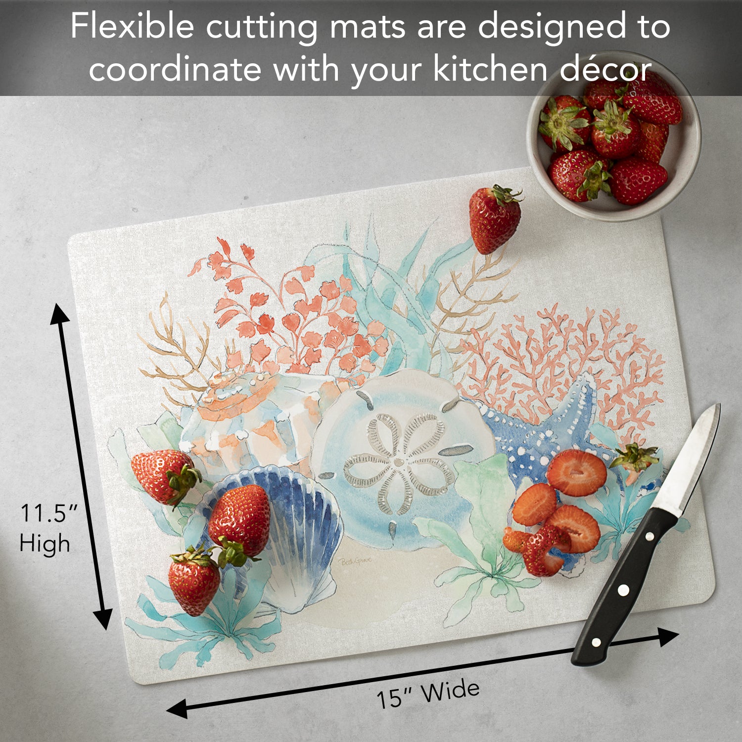 Cut N' Funnel Seaside Designer Flexible Plastic Cutting Board Mat 15" x 11.5"