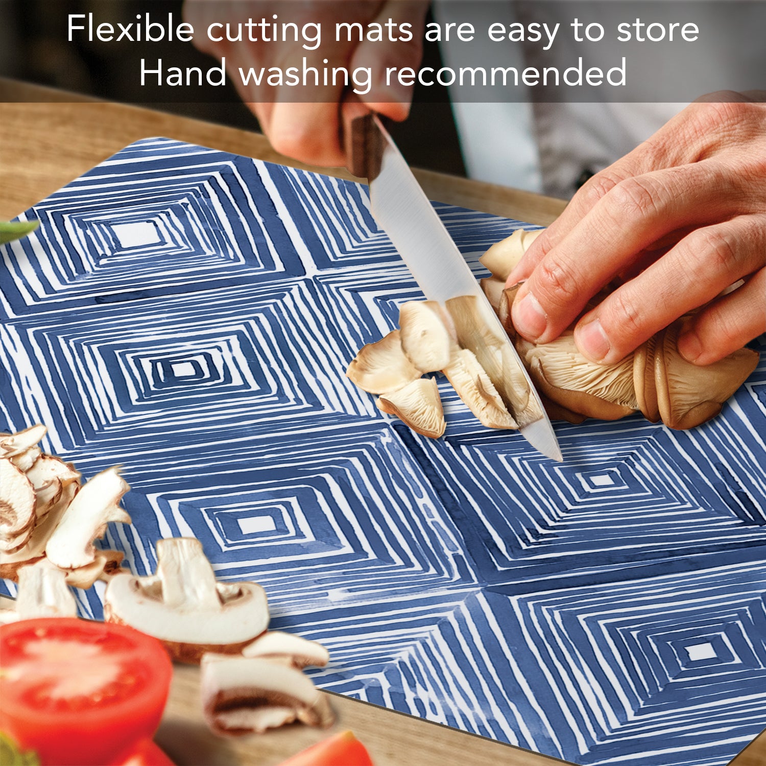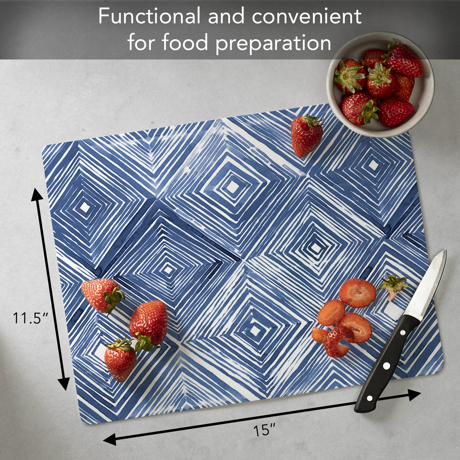 Cut N' Funnel Shibori Blues Designer Flexible Plastic Cutting Board Mat 15" x 11.5"