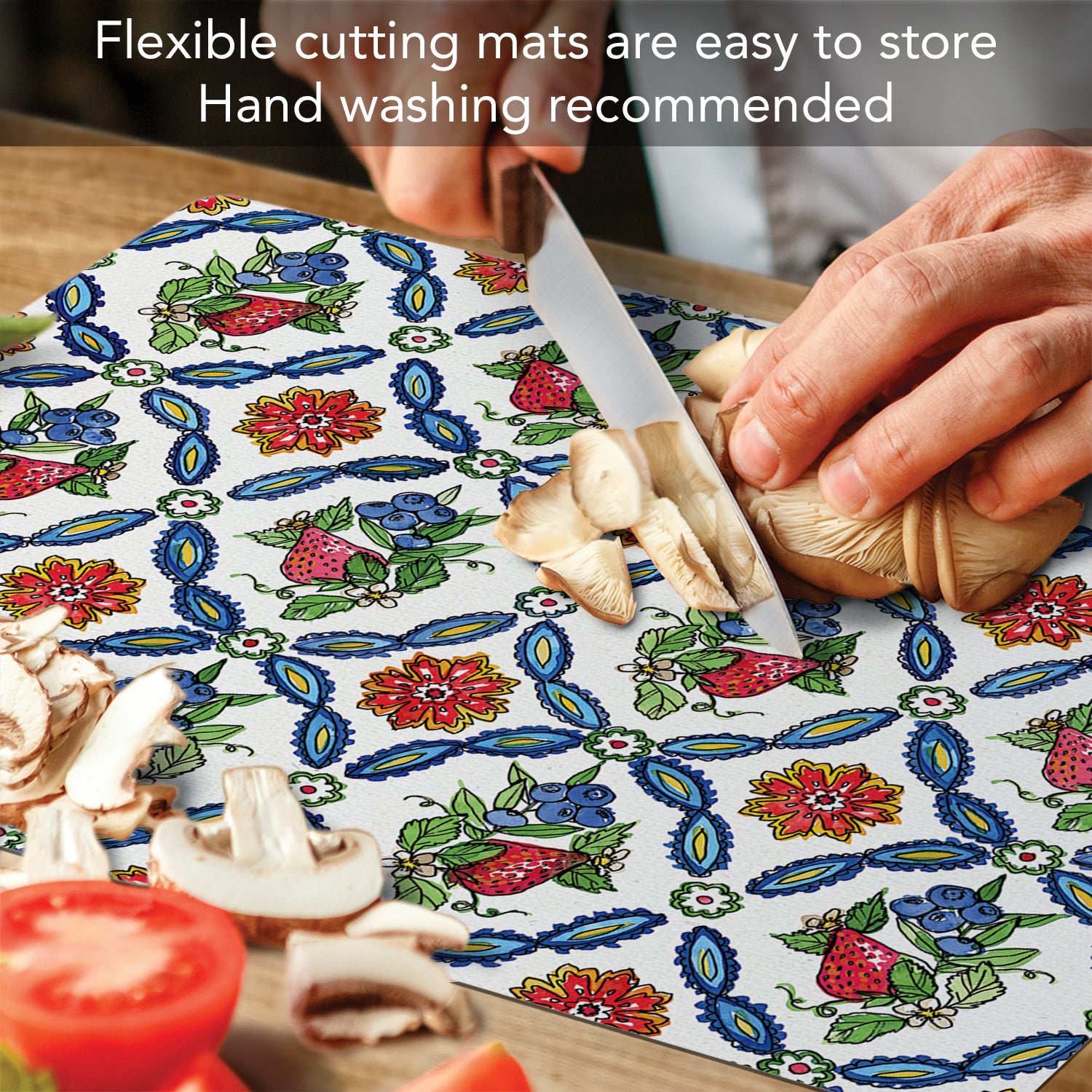 Cut N' Funnel Strawberry Garden Designer Flexible Plastic Cutting Board Mat 15" x 11.5"