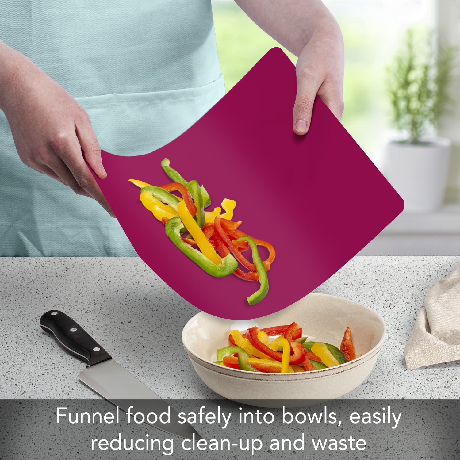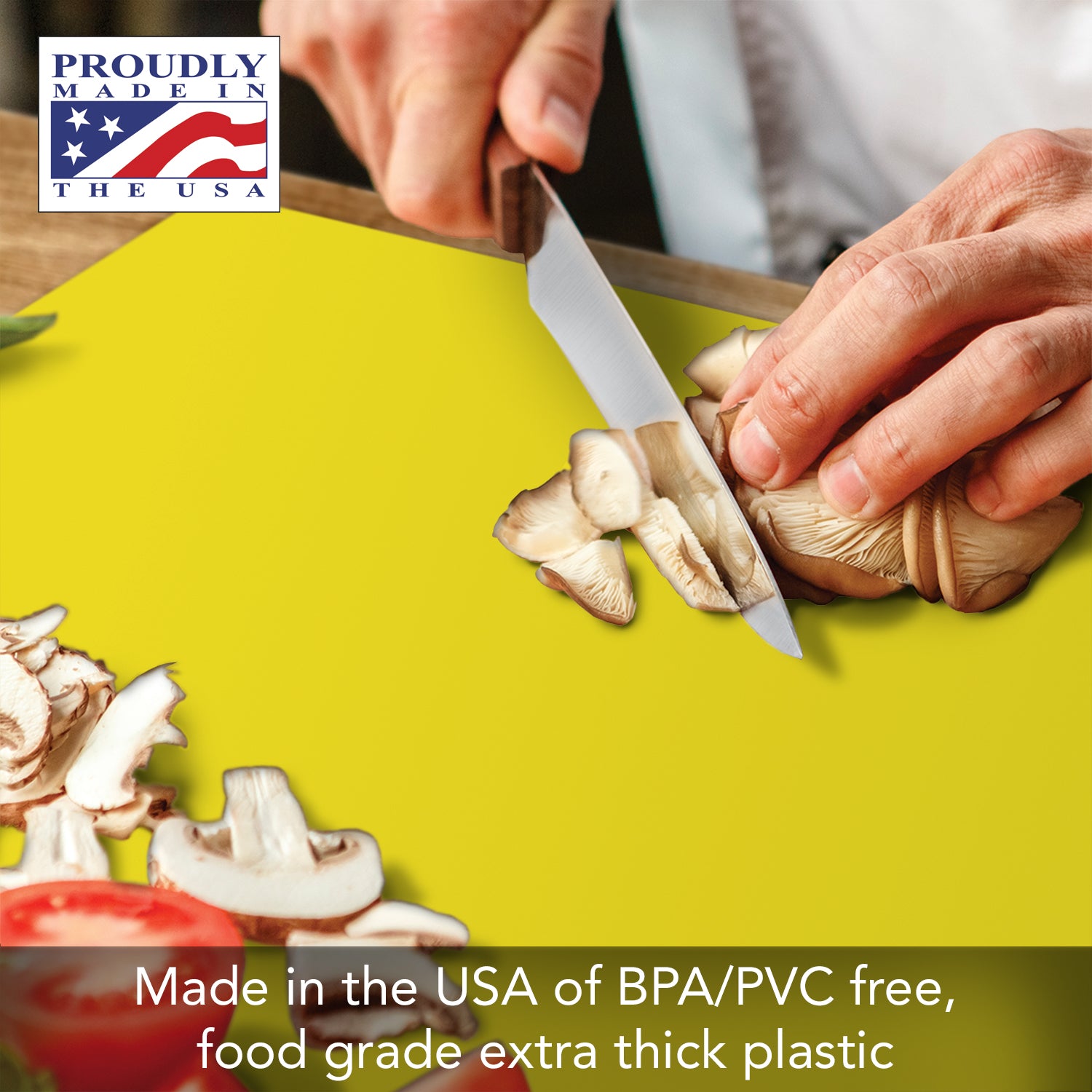 - CONSTRUCTION- Thick Cutting Board Mats are made of thick American made plastic. The strength of the plastic makes it easy to transfer chopped, sliced, or shredded food directly into a bowl, pan, or food processor.