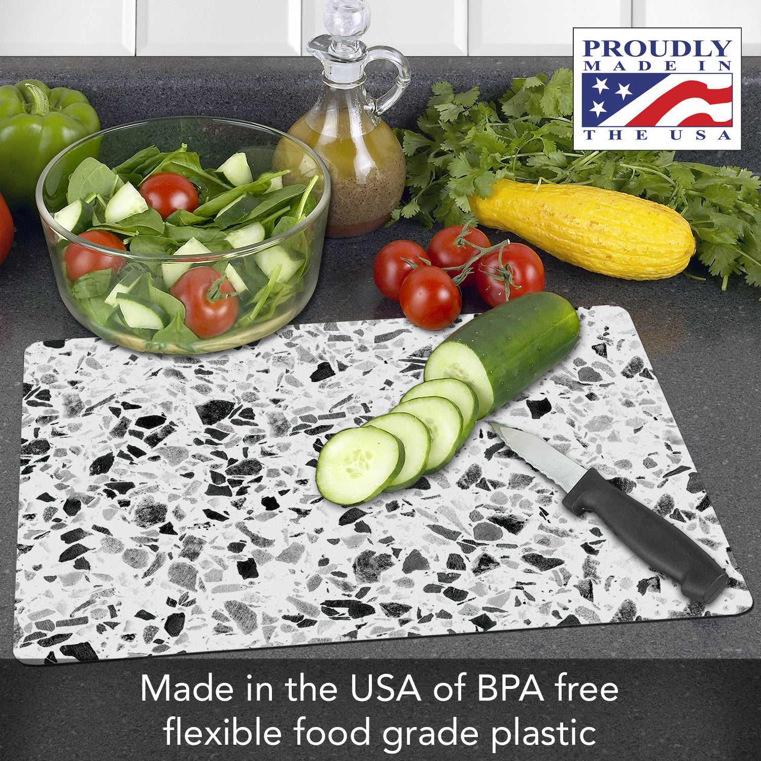 Cut N' Funnel Terrazzo Designer Flexible Plastic Cutting Board Mat 15" x 11.5", Made in the USA, Decorative, Flexible, Easy to Clean