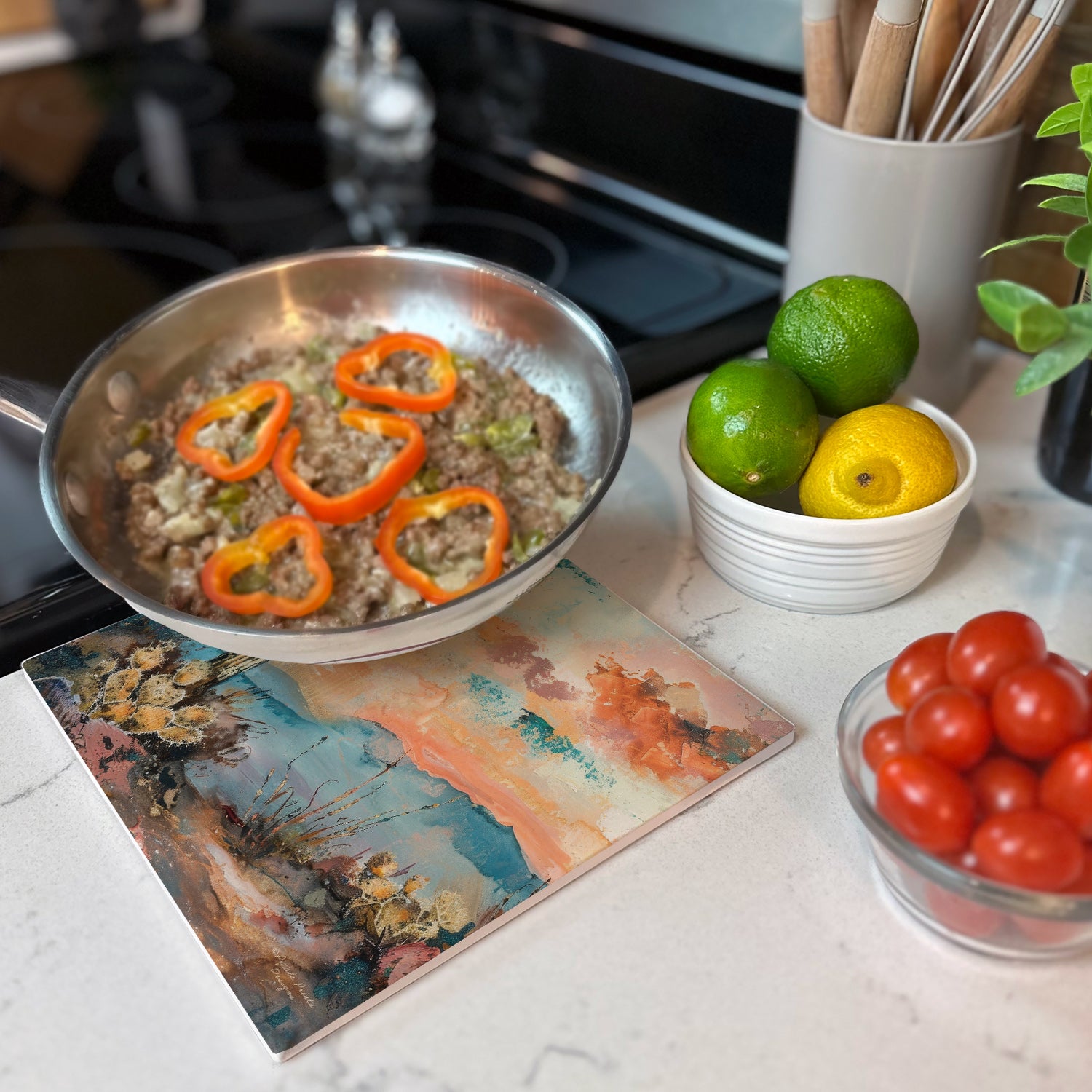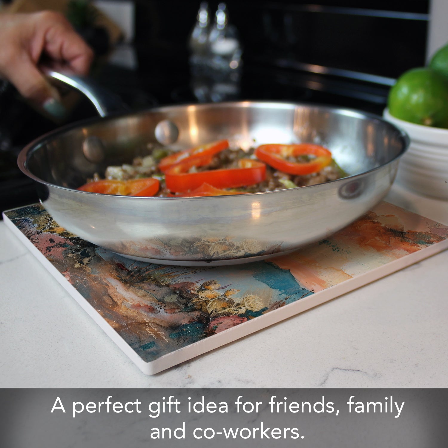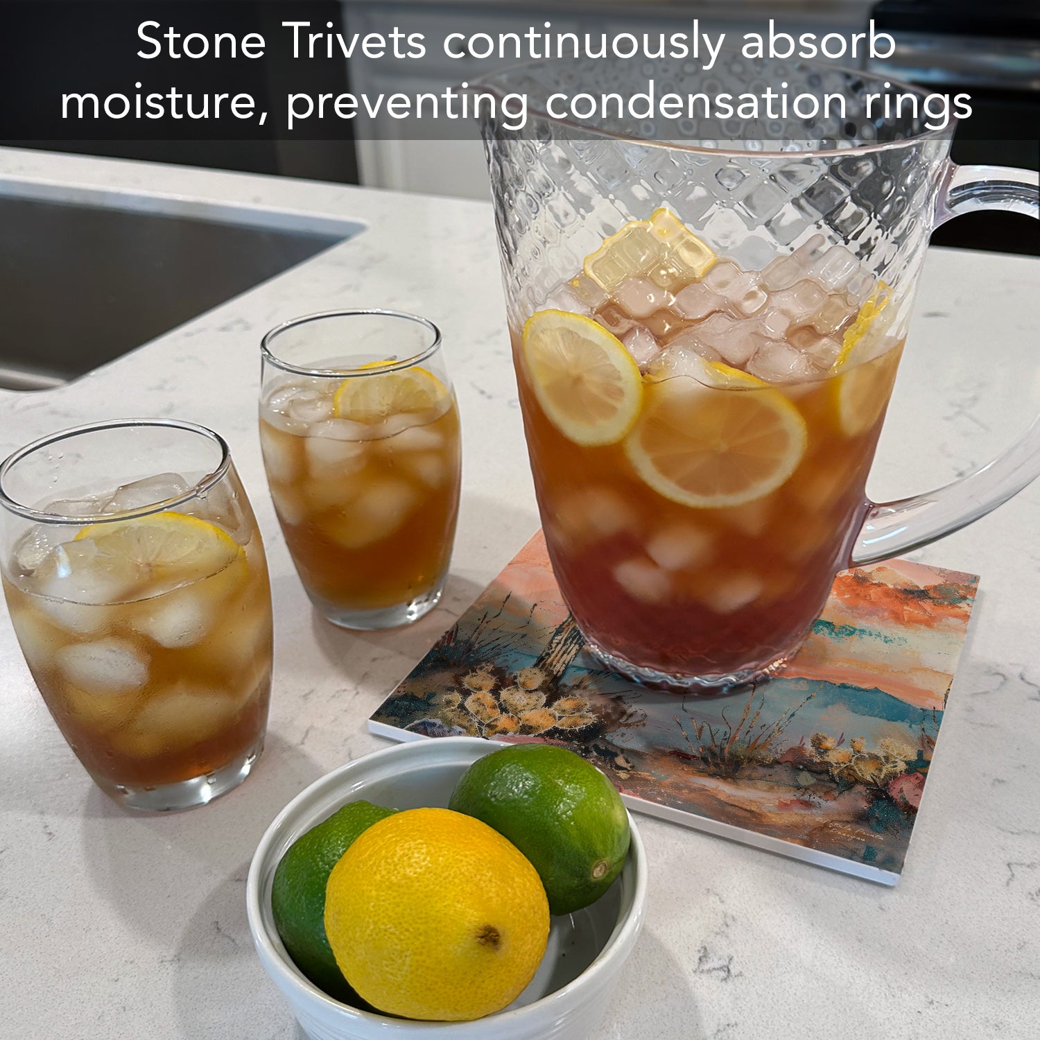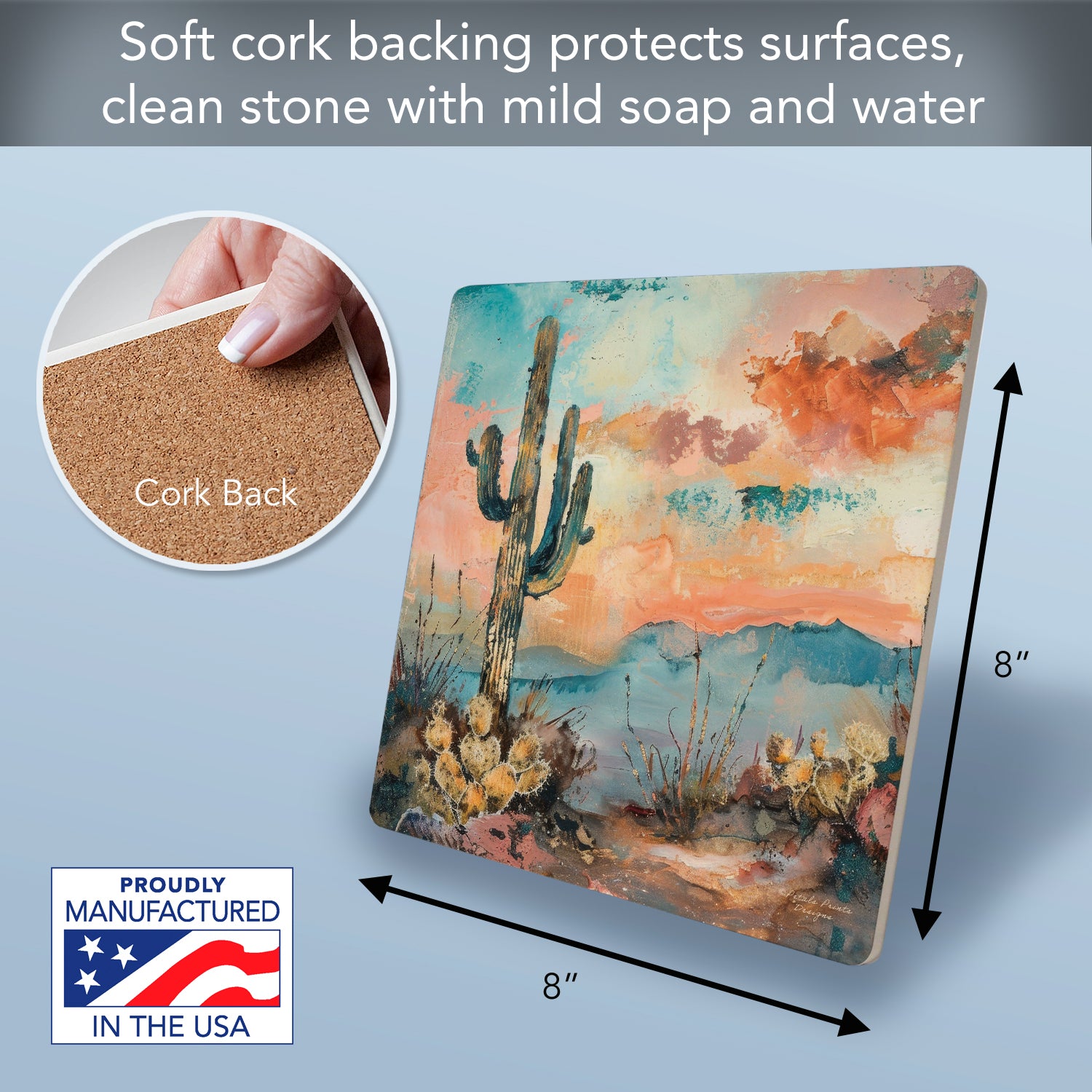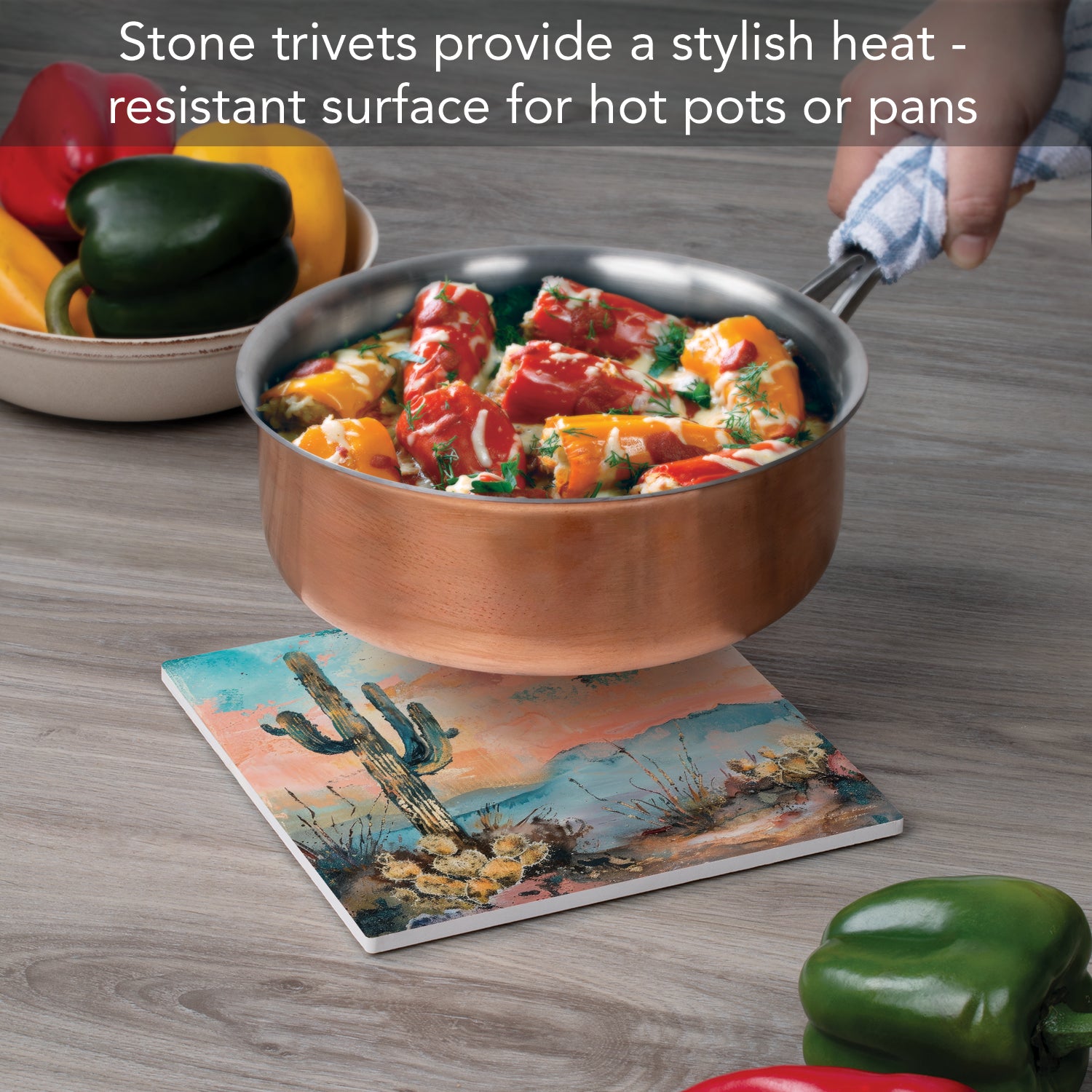 Thirstystone Desert Dream Decorative Heat Tolerant Stone Trivet with Non-Skid Cork Backing 8” Square