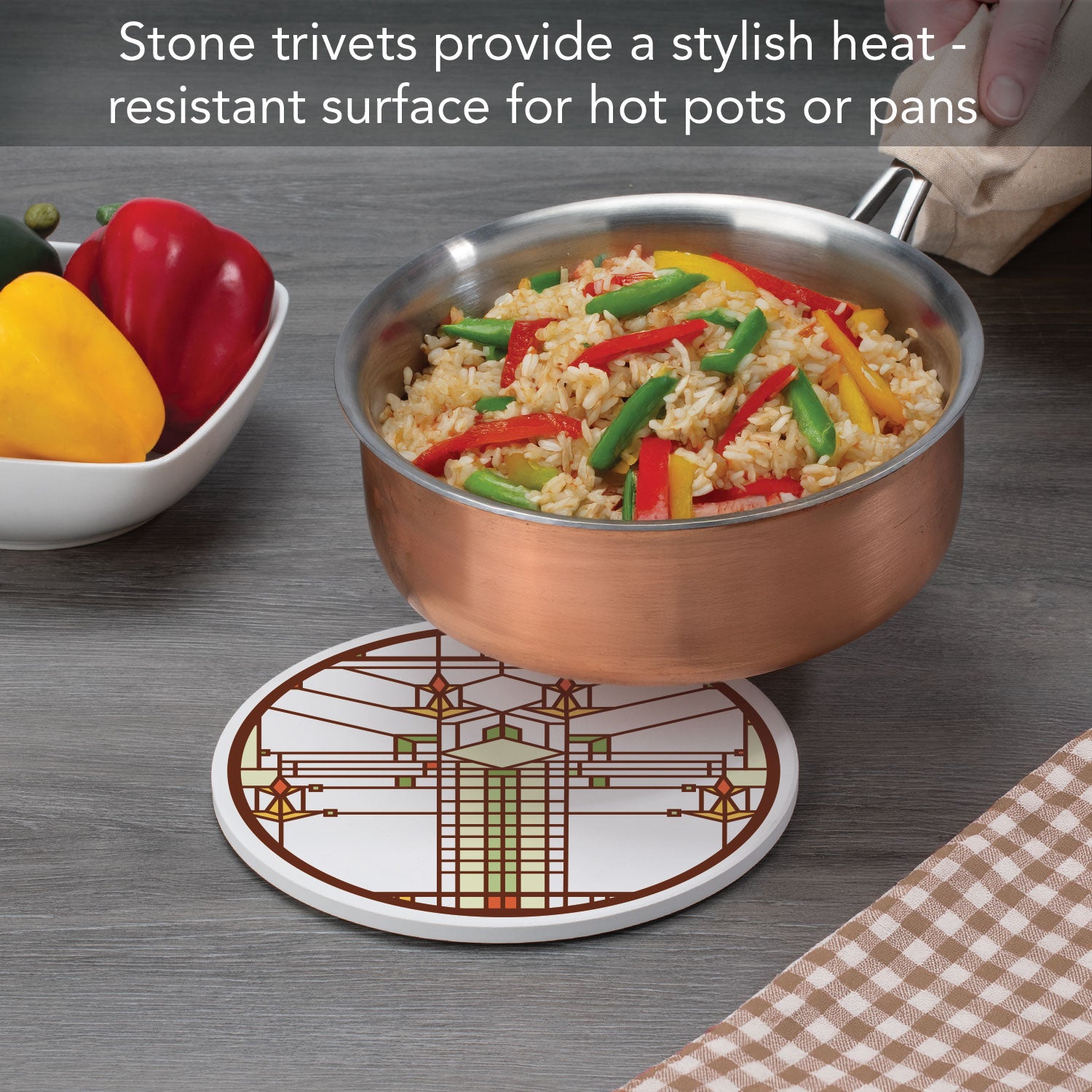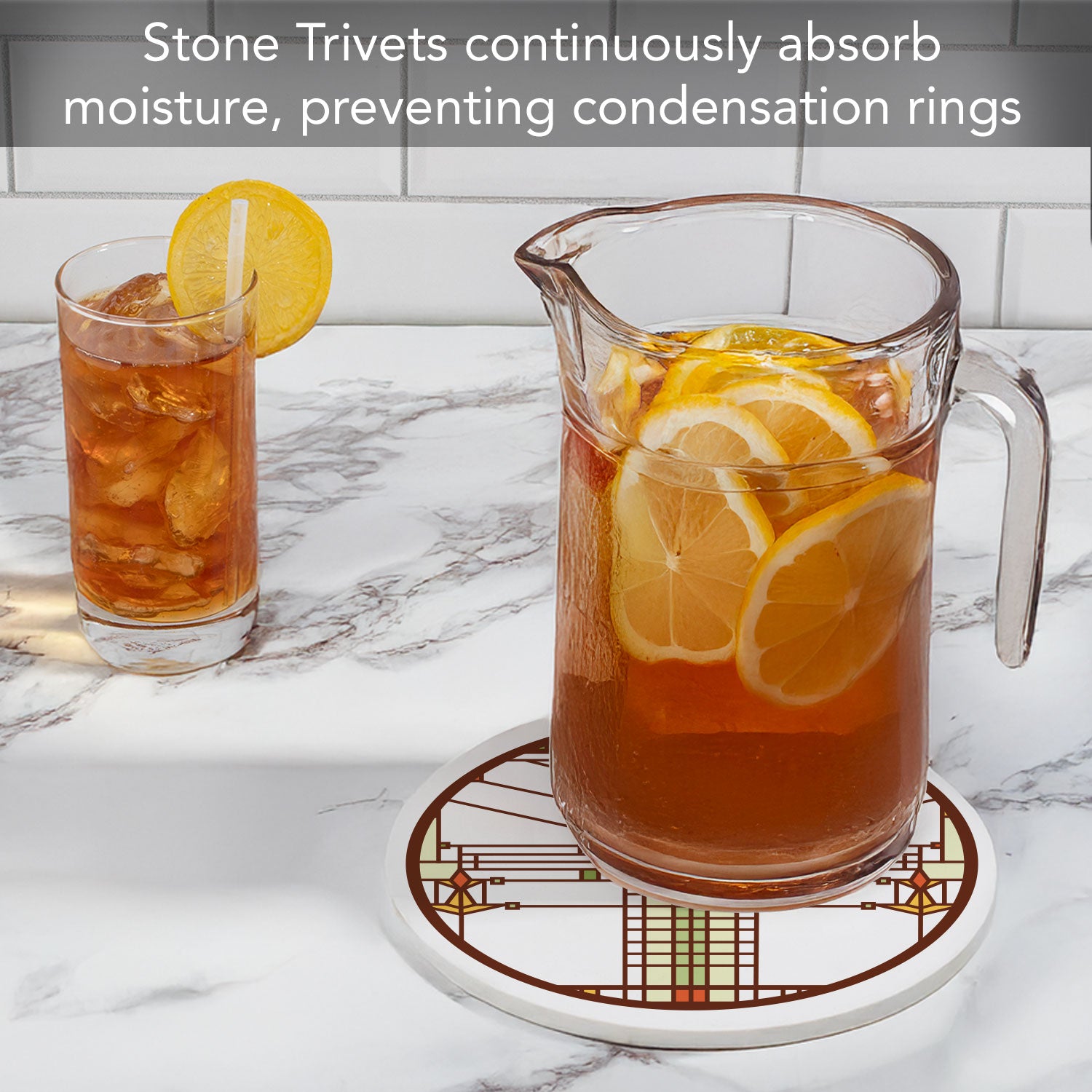 DURABLE-Trivet is made from strong durable ceramic stone. Stone absorbs heat and distributes it throughout the Trivet to keep from damaging your favorite pots and surfaces.