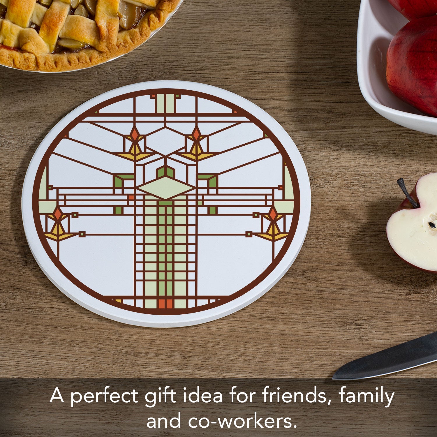 Frank Lloyd Wright 4 Pack B. Harley Bradley House Design 8" Round Stone Trivet Manufactured in the USA