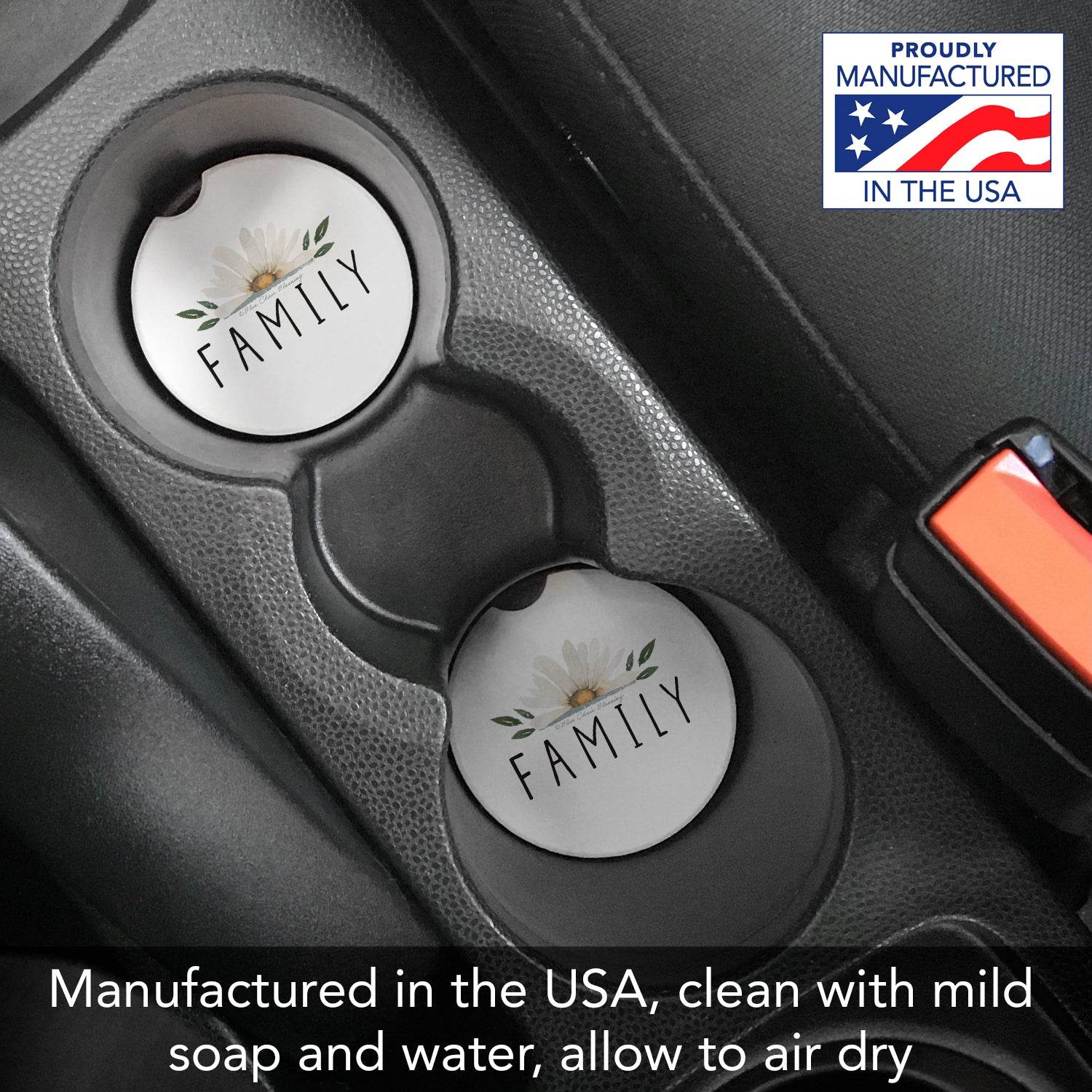 Family Floral 2 Pack Absorbent Stone Car Coasters 2.6" Manufactured in the USA