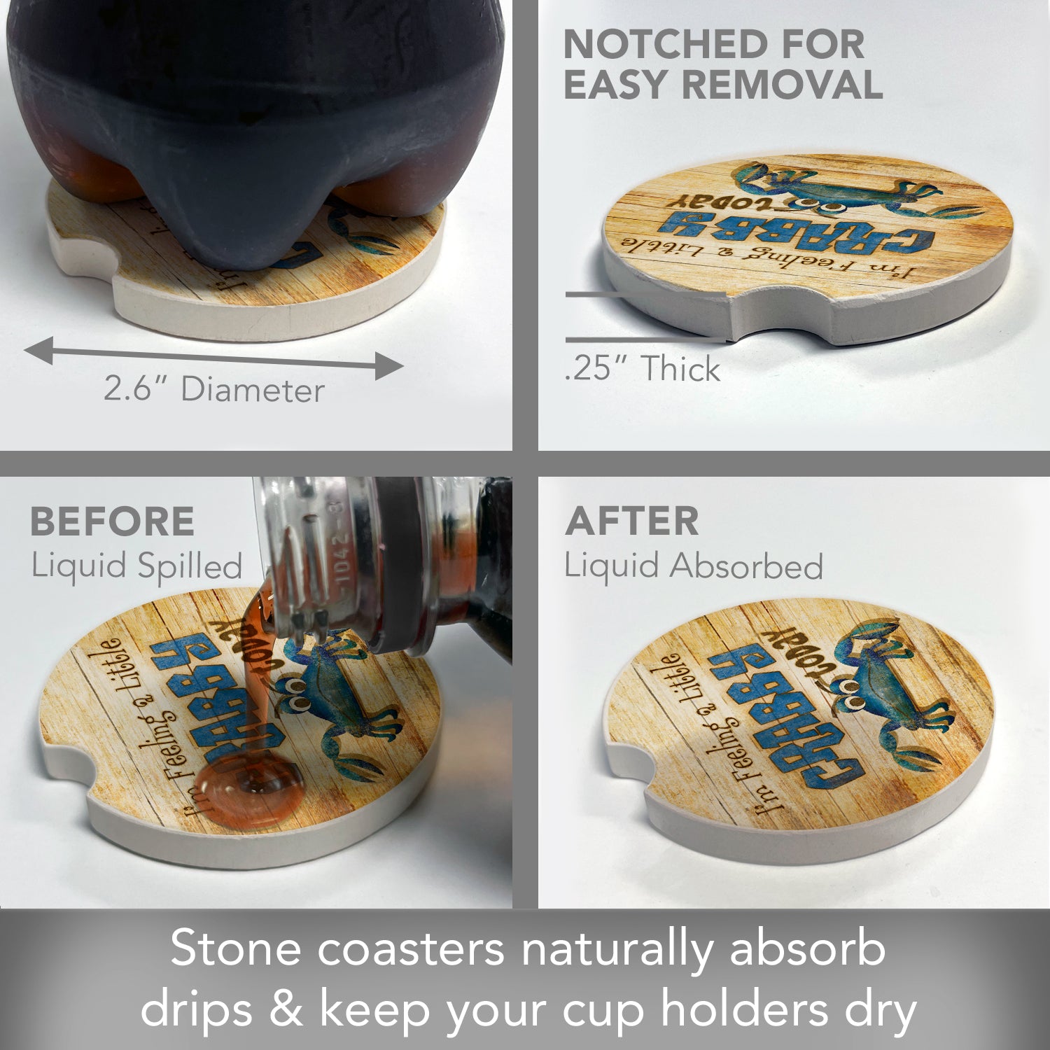 Feeling Crabby 2 Pack Absorbent Stone Car Coasters 2.6" Manufactured in the USA