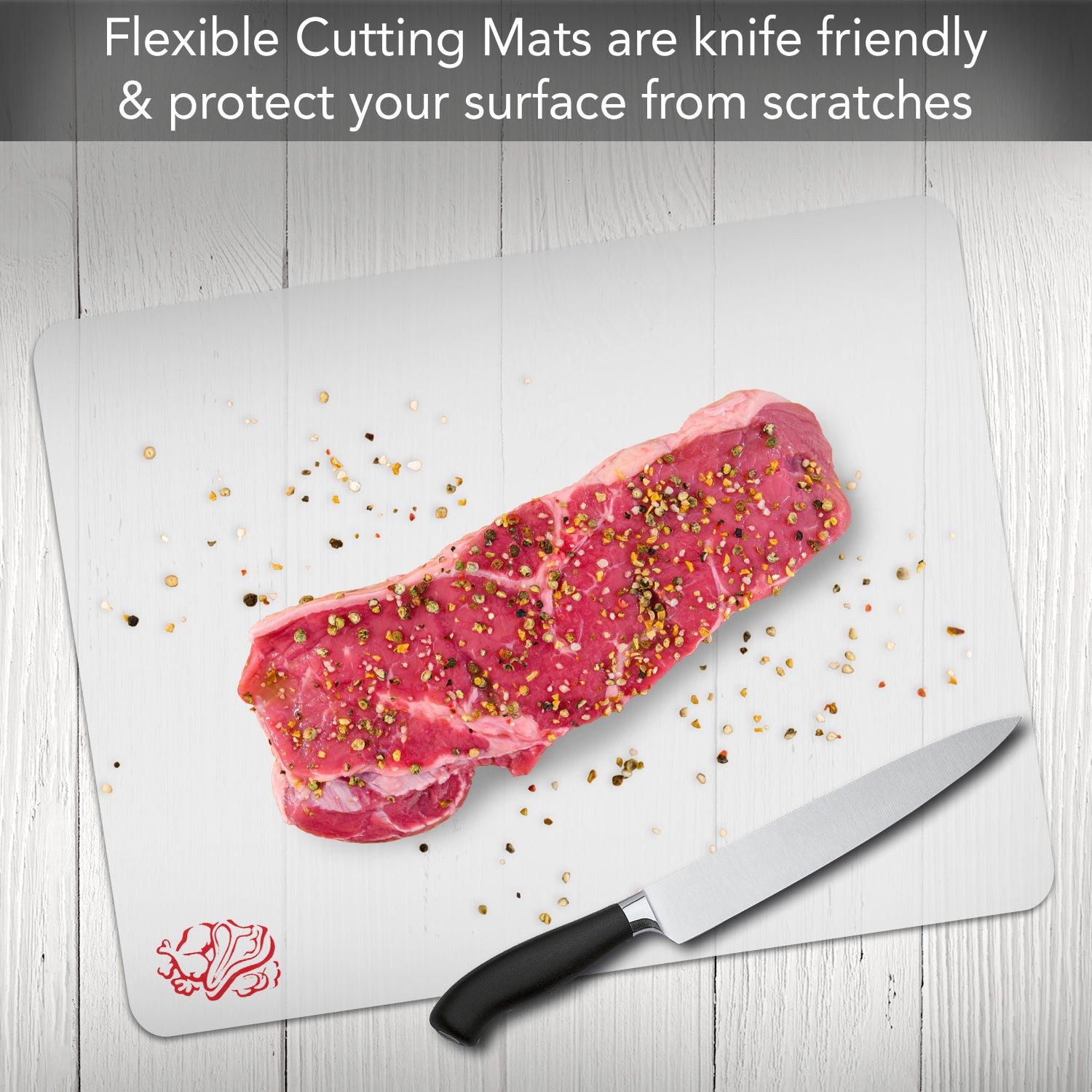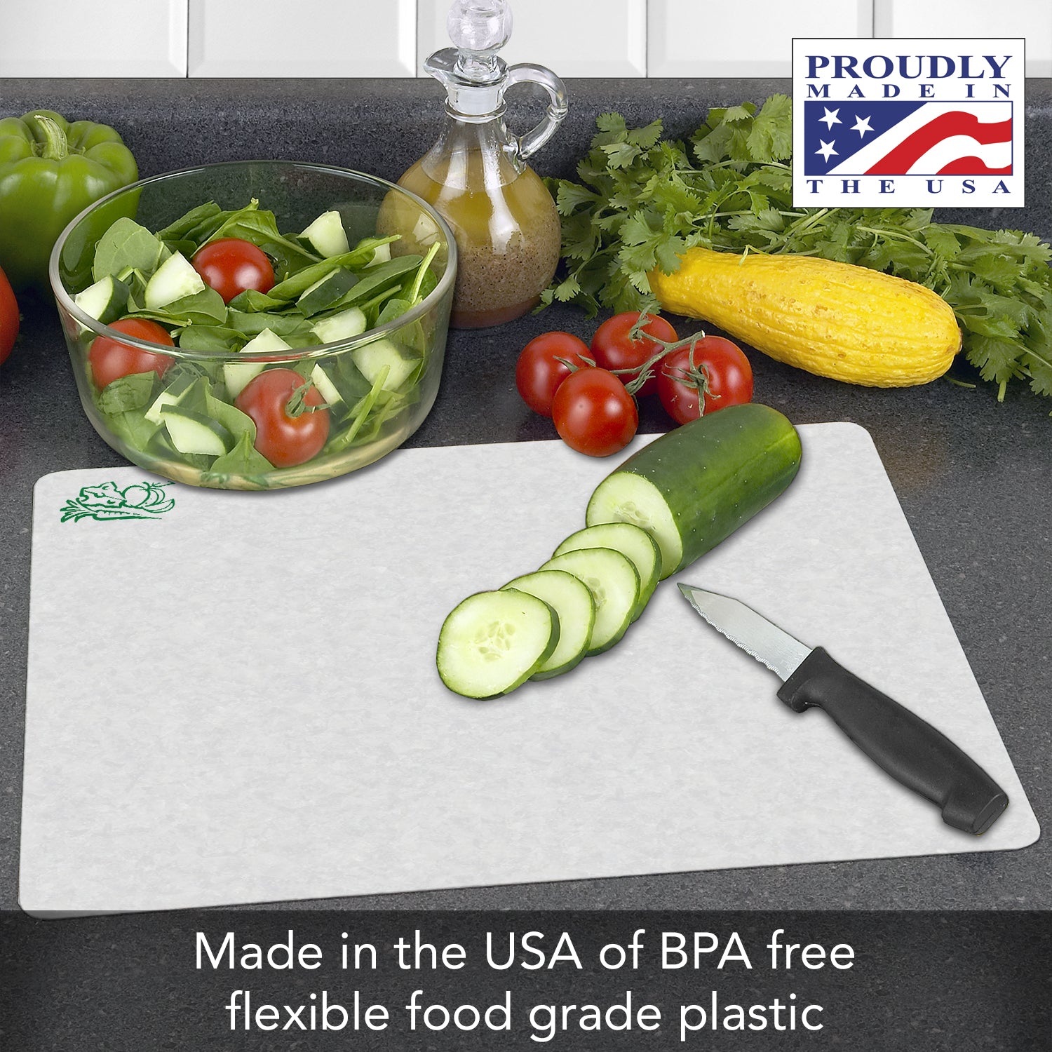 - KNIFE FRIENDLY flexible cutting board mats provide a safe surface to chop, slice and cut foods without dulling knives.