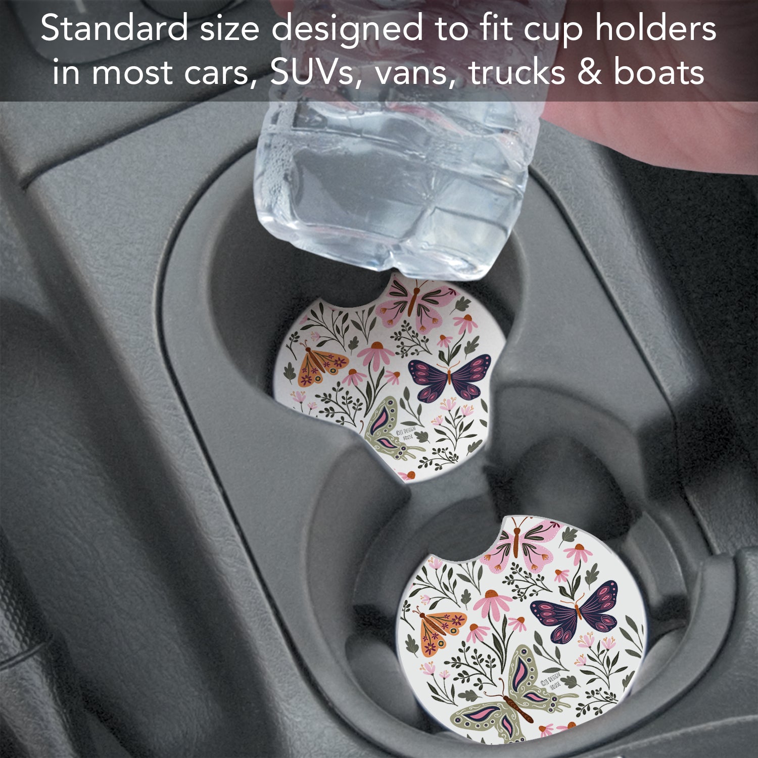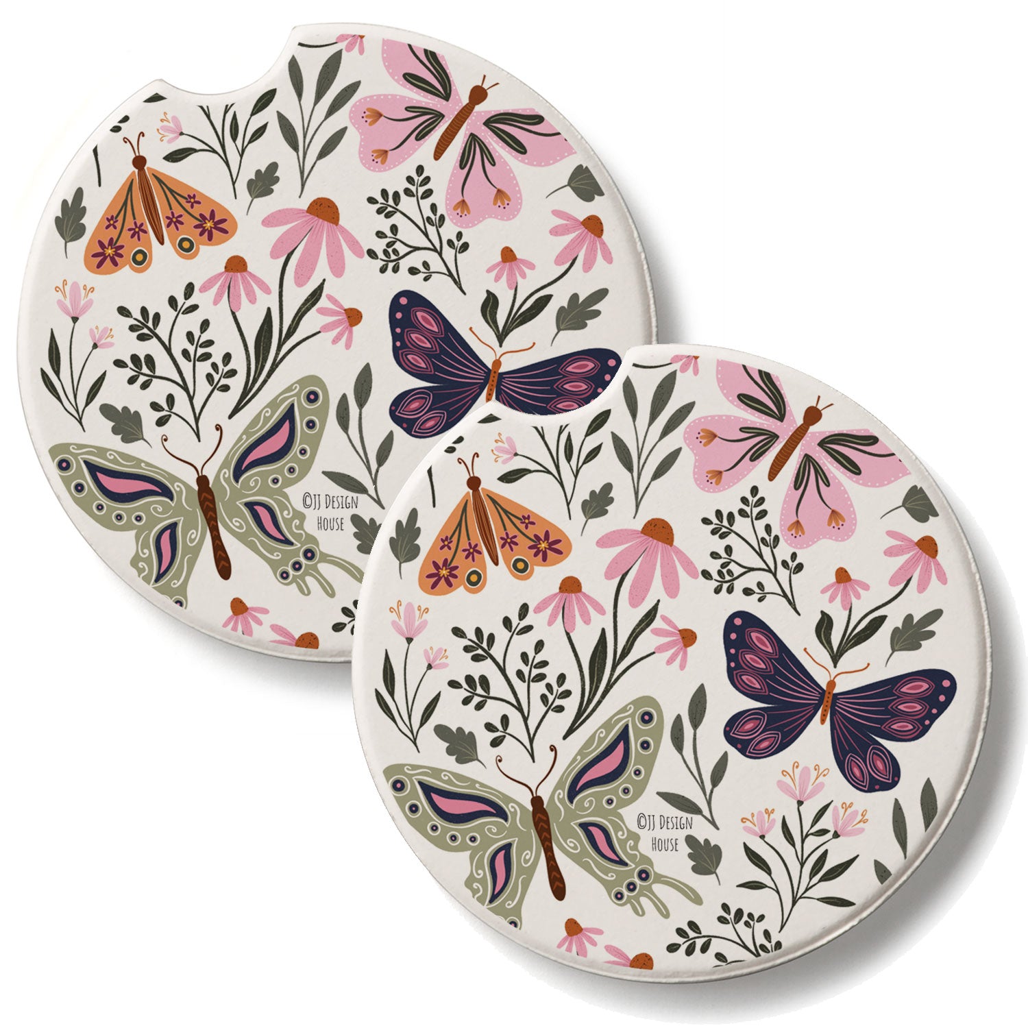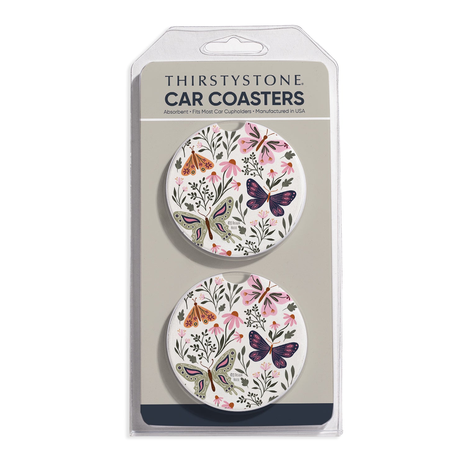 Flutter Blooms 2 Pack Absorbent Stone Car Coasters 2.6" Manufactured in the USA