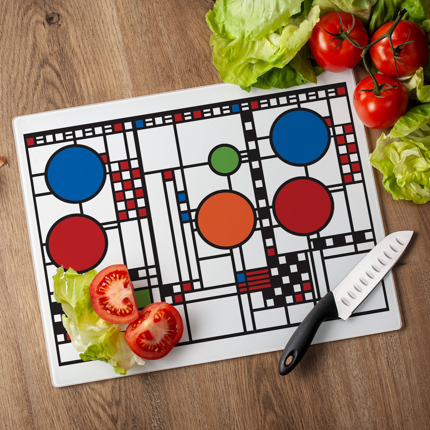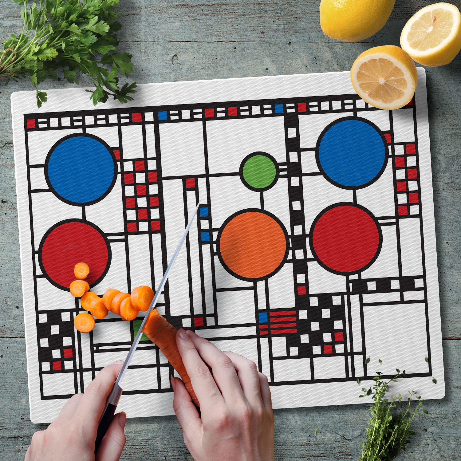 Frank Lloyd Wright Coonley Playhouse Design 3mm Tempered Glass Cutting Board 15" x 12"