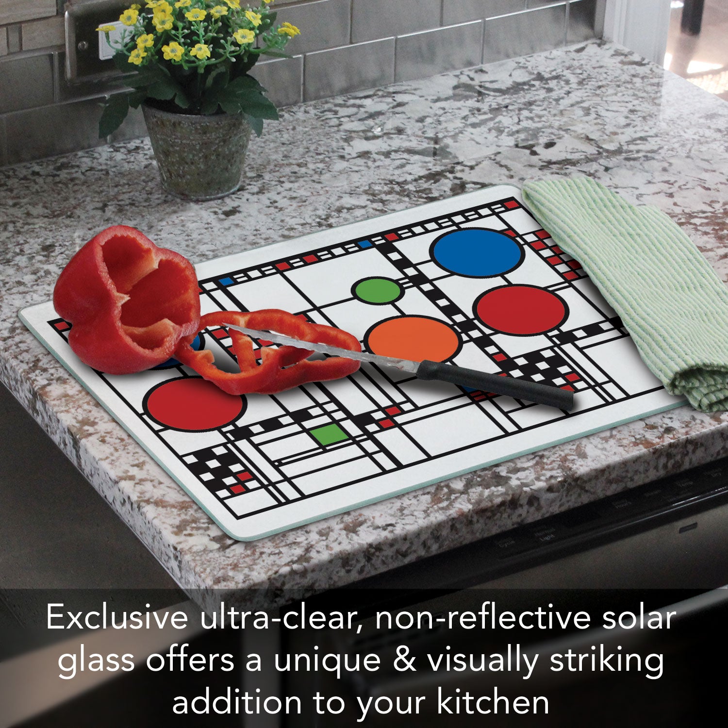 - ART FOR THE KITCHEN-Functional Art for your kitchen. Beautiful artistic design allows this Cutting Board to fit into any Home Interior Design. Design allows the board to remain displayed even when not in use.