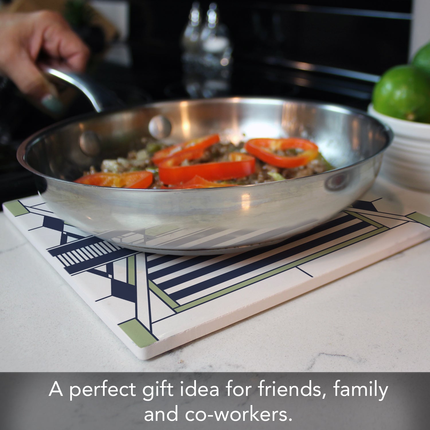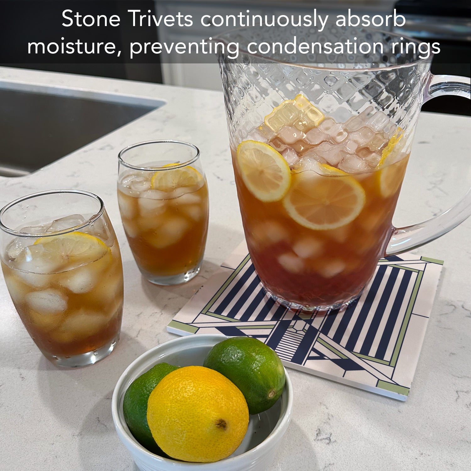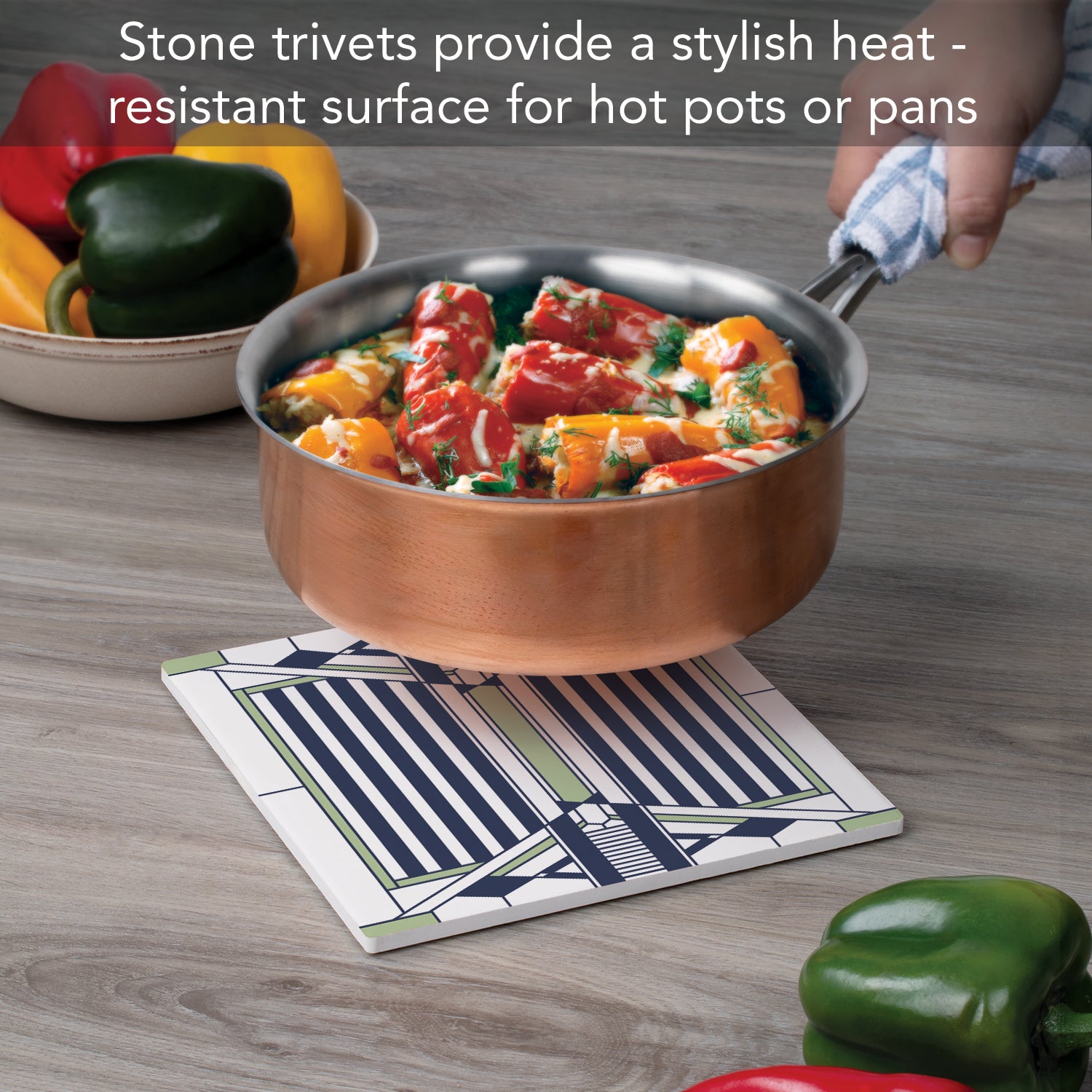 DURABLE-Trivet is made from strong durable ceramic stone. Stone absorbs heat and distributes it throughout the Trivet to keep from damaging your favorite pots and surfaces.