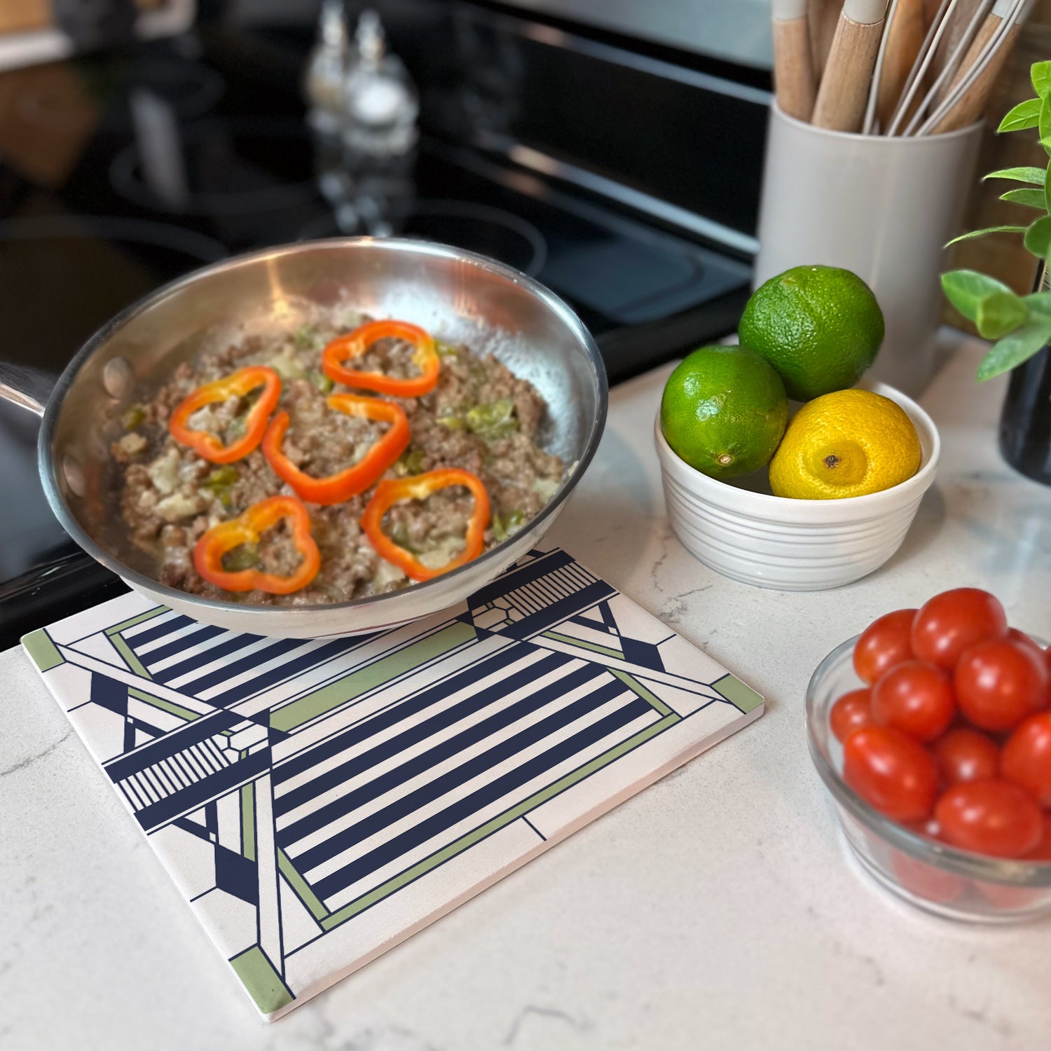 Frank Lloyd Wright's Evans House Design on 8" Square Stone Trivet Manufactured in the USA
