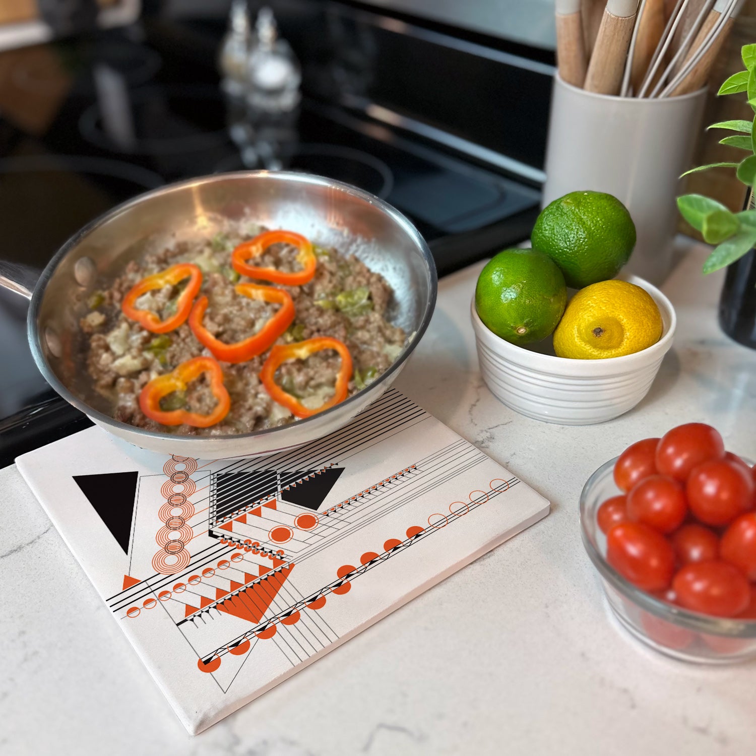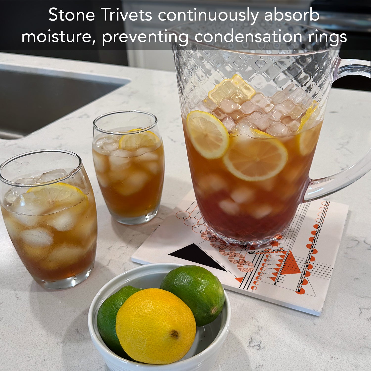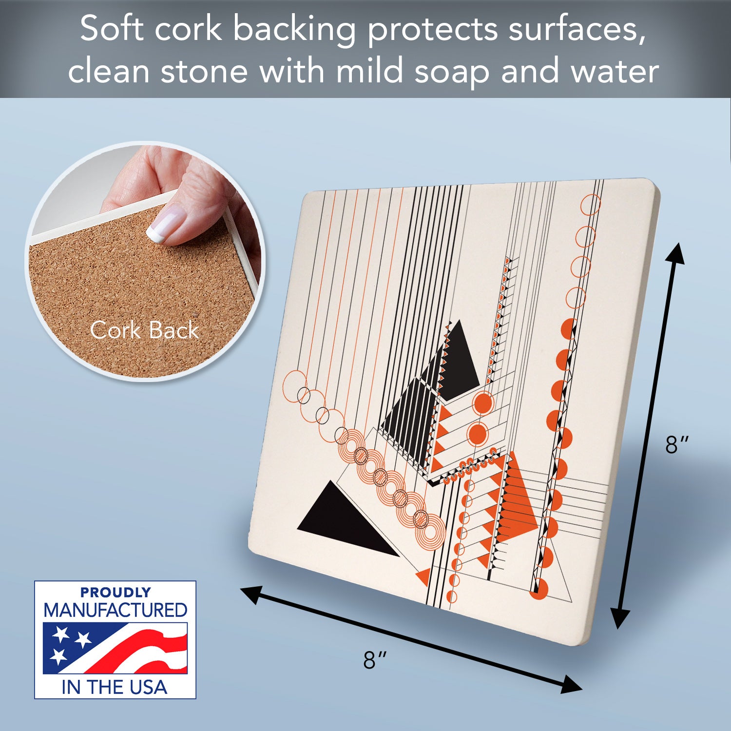 Frank Lloyd Wright's Geometric Adornment I on 8" Square Stone Trivet Manufactured in the USA