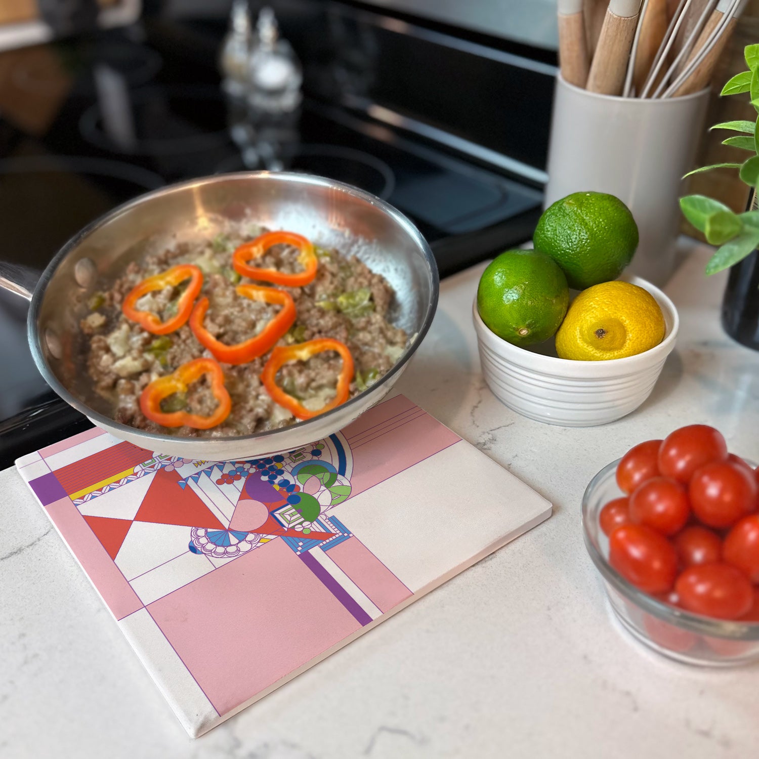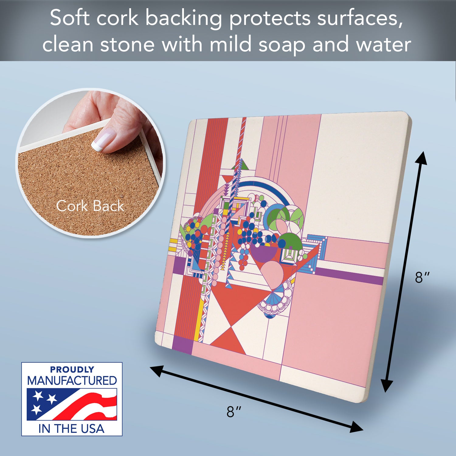 Frank Lloyd Wright's May Basket II Design on 8" Square Stone Trivet Manufactured in the USA