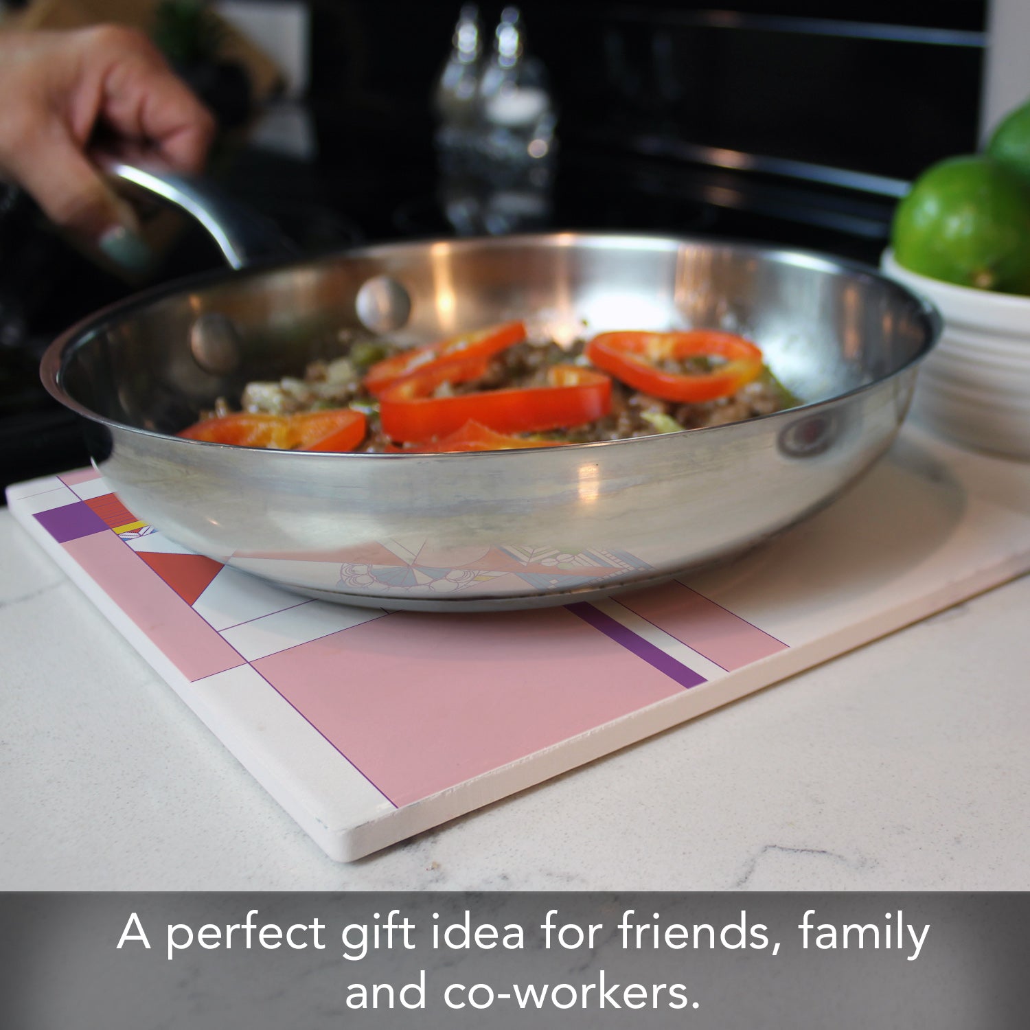 MEASUREENTS-Each Trivet measures 8" x 8" x 0.25" and is square in shape. Trivet is sized to fit most saucepans and bakeware.