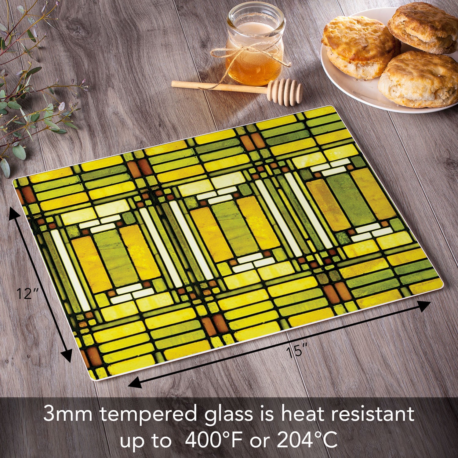 Frank Lloyd Wright Oak Park Skylight Design 3mm Tempered Glass Cutting Board 15" x 12"