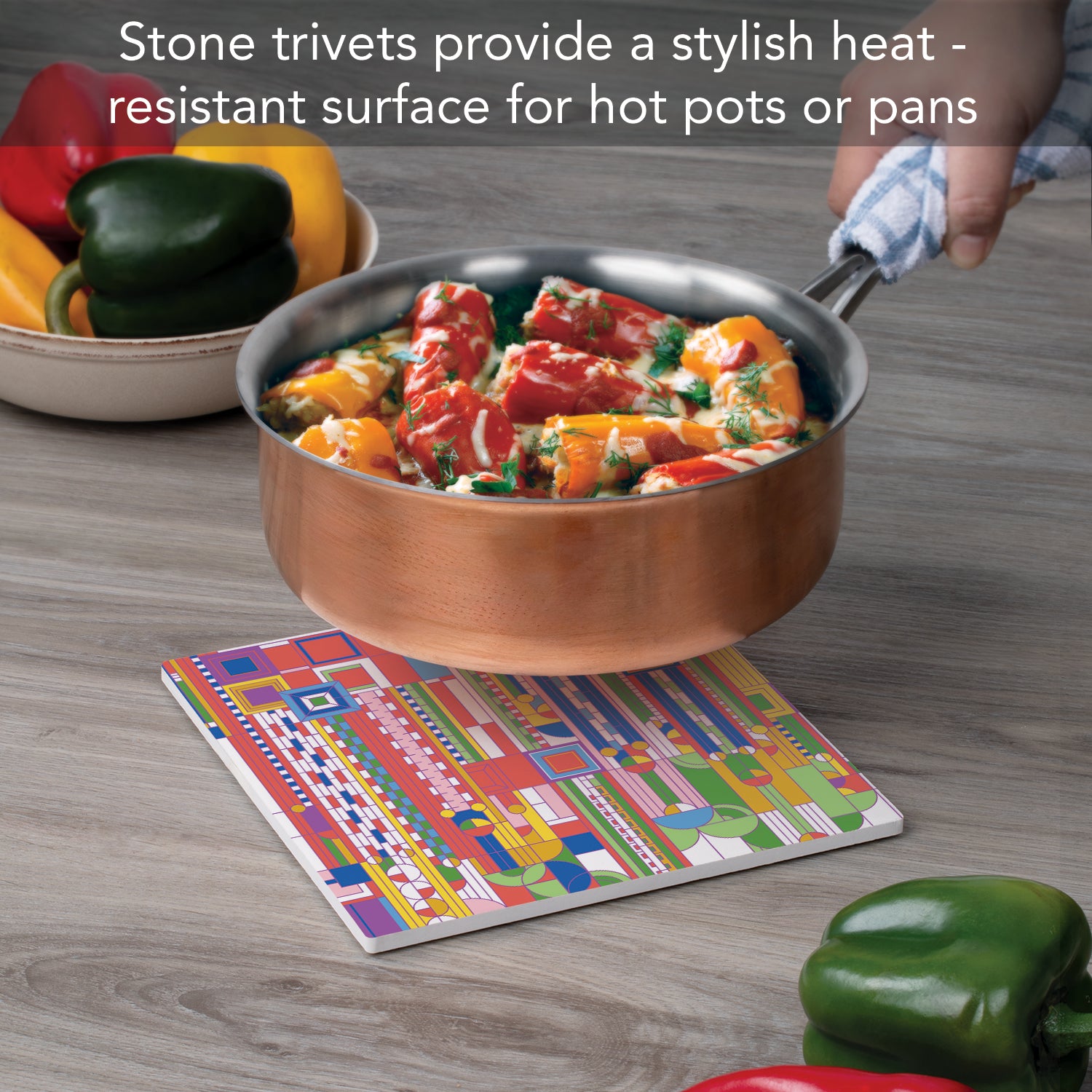 DURABLE-Trivet is made from strong durable ceramic stone. Stone absorbs heat and distributes it throughout the Trivet to keep from damaging your favorite pots and surfaces.