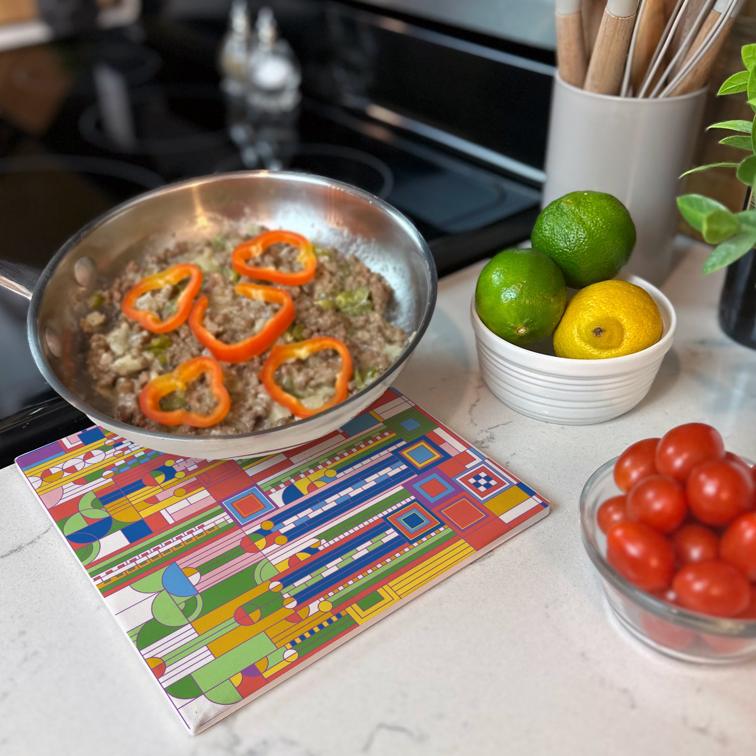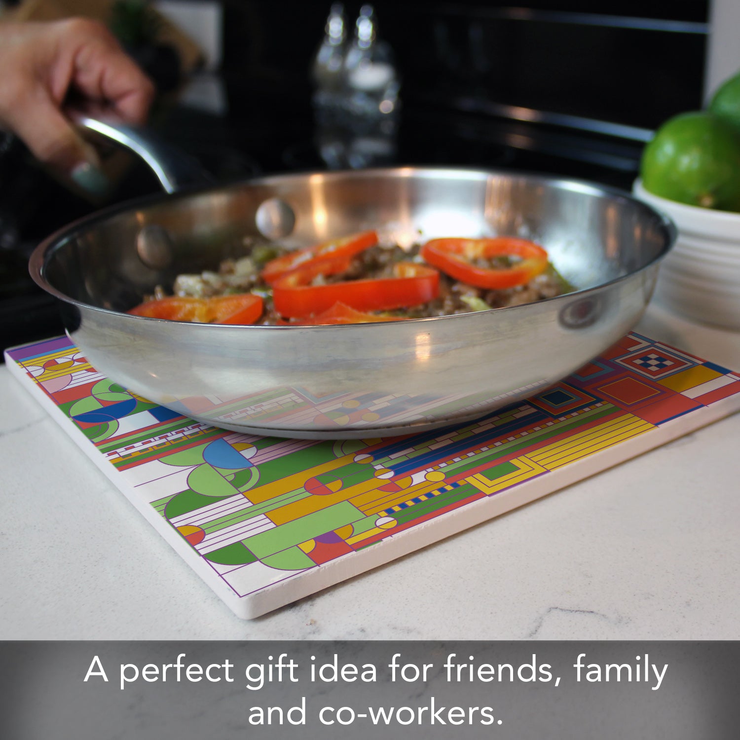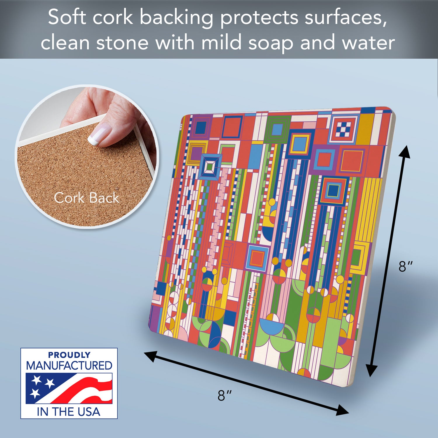 Frank Lloyd Wright's Saguaro Design on 8" Square Stone Trivet Manufactured in the USA