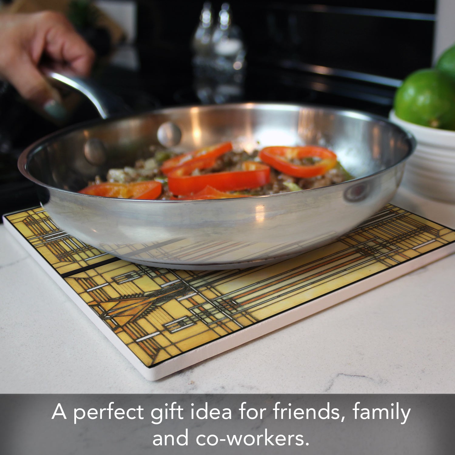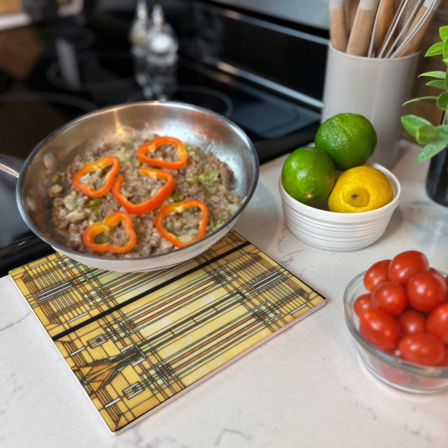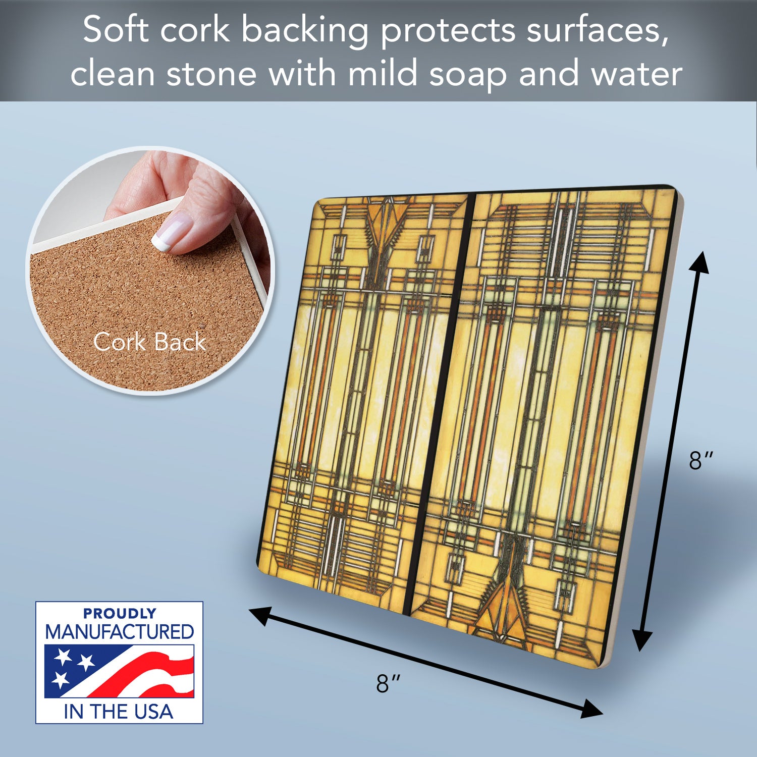 Frank Lloyd Wright's B.Harley Bradley House Design on 8" Square Stone Trivet Manufactured in the USA