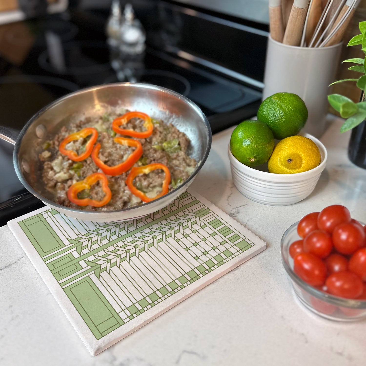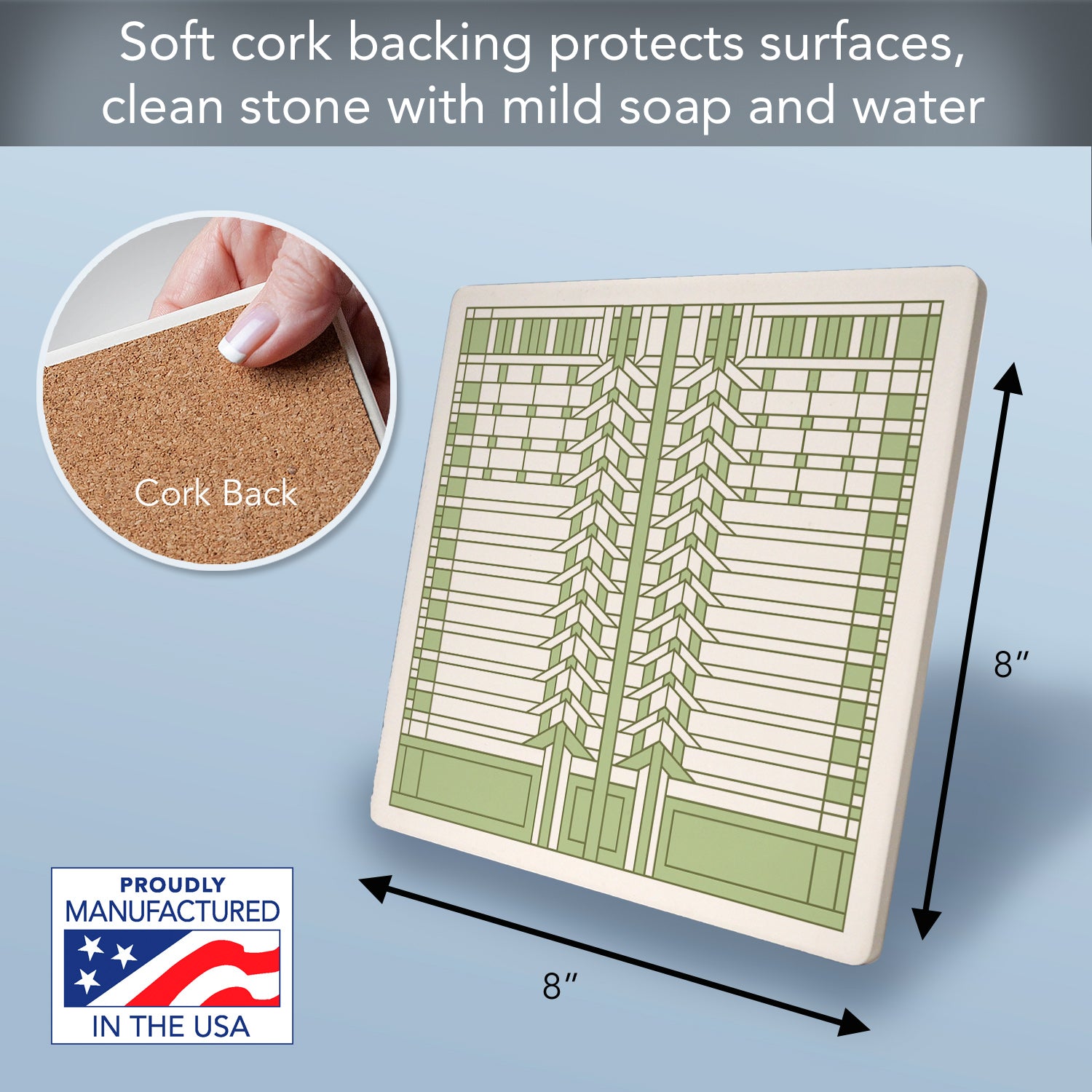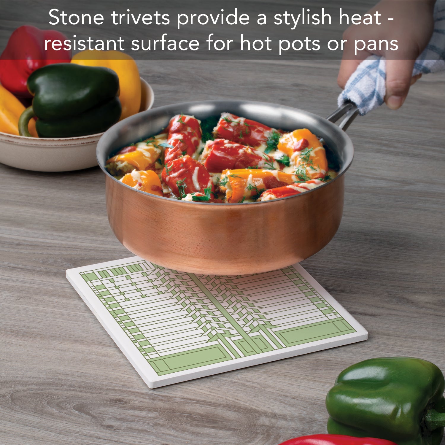 Frank Lloyd Wright's Darwin D. Martin House Design on 8" Square Stone Trivet Manufactured in the USA