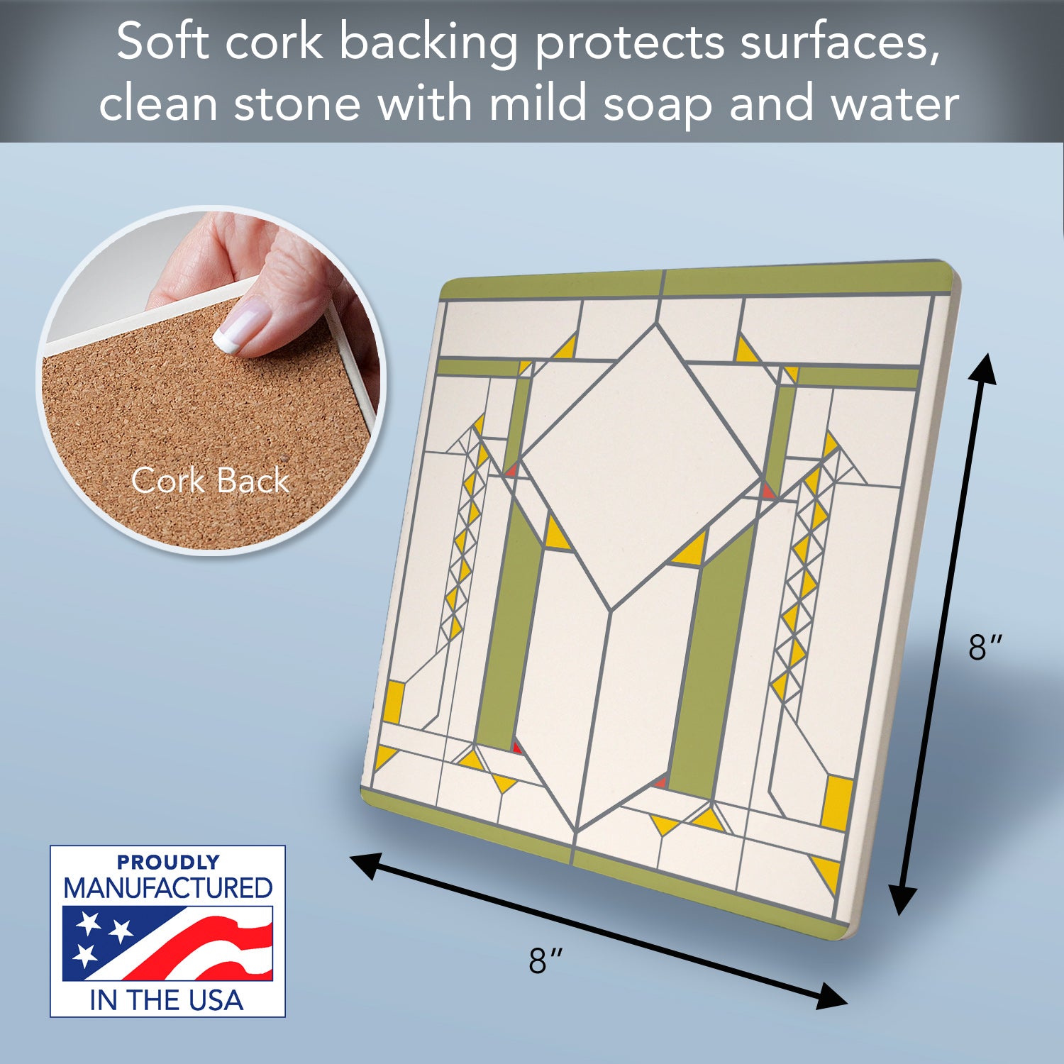 Frank Lloyd Wright's Francis Little Design on 8" Square Stone Trivet Manufactured in the USA