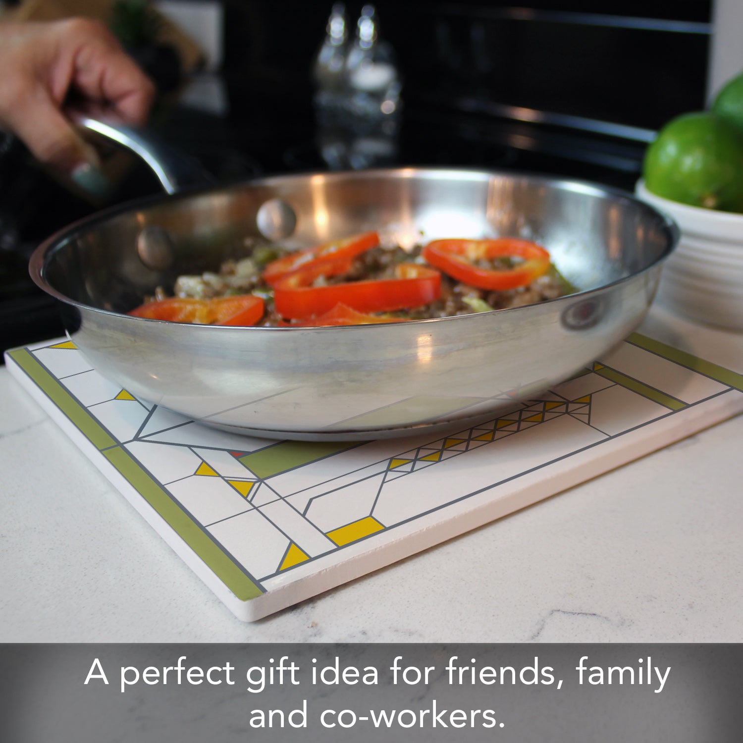 MEASUREENTS-Each Trivet measures 8" x 8" x 0.25" and is square in shape. Trivet is sized to fit most saucepans and bakeware.