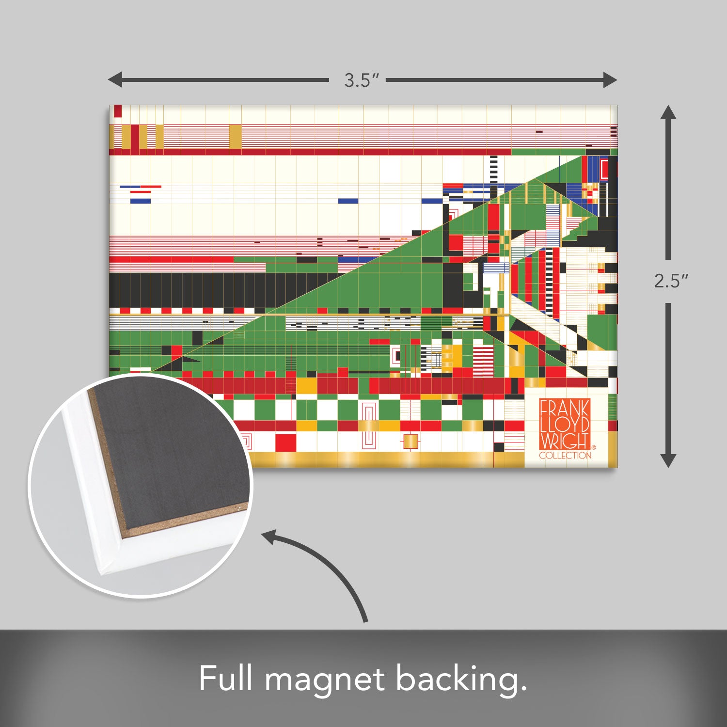DECORATIVE MAGNET- Magnets are decorated with vibrant and bold colors. Glossy finish adds an aesthetic appeal. Each Magnet features one of Frank Lloyd Wright’s architectural designs.