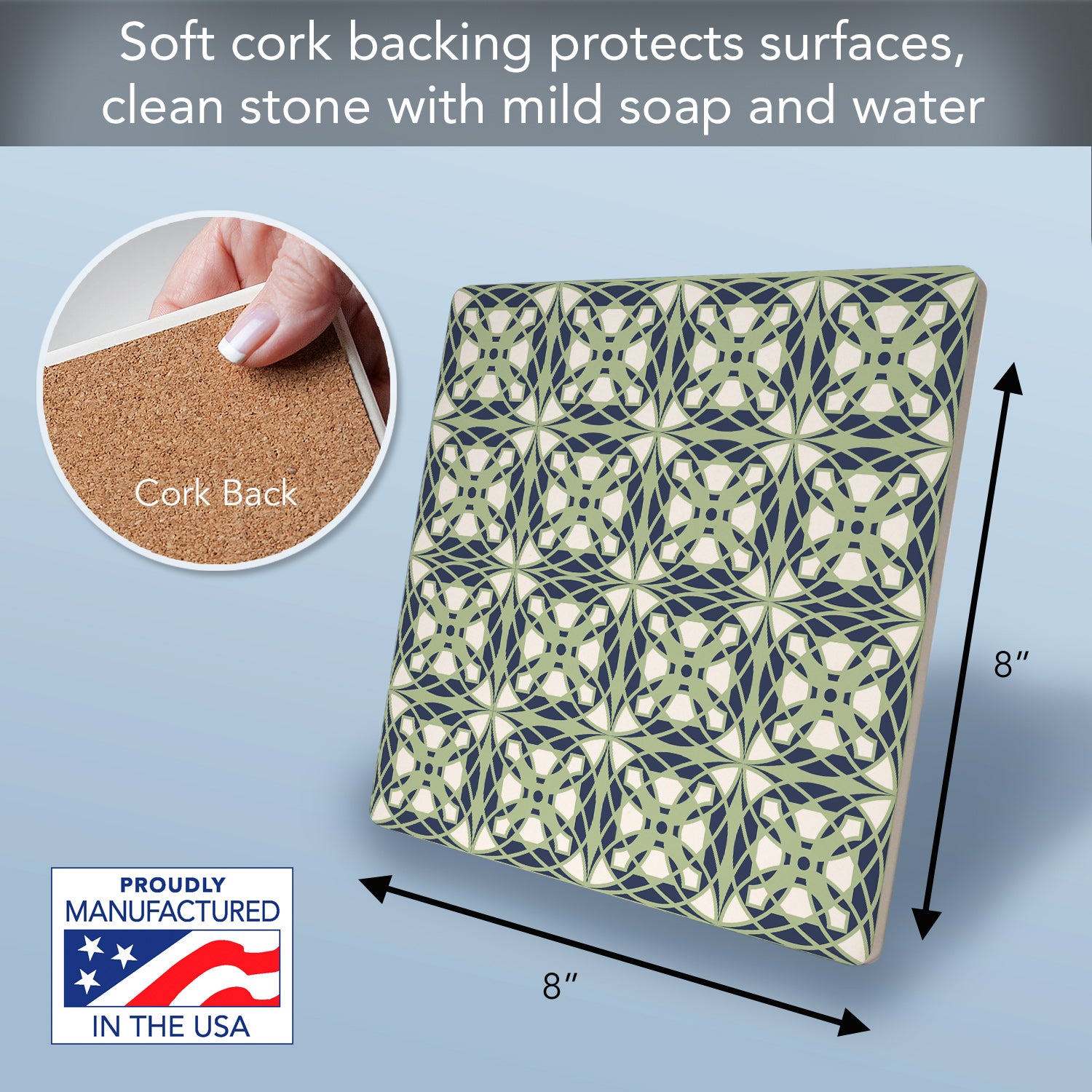 CORK BACKING-Each Trivet has an attached Non-Skid Cork Backing. Cork backing assists in keeping the Trivet stabilized when in use. Cork backing also protects your surfaces from scratches and stains.