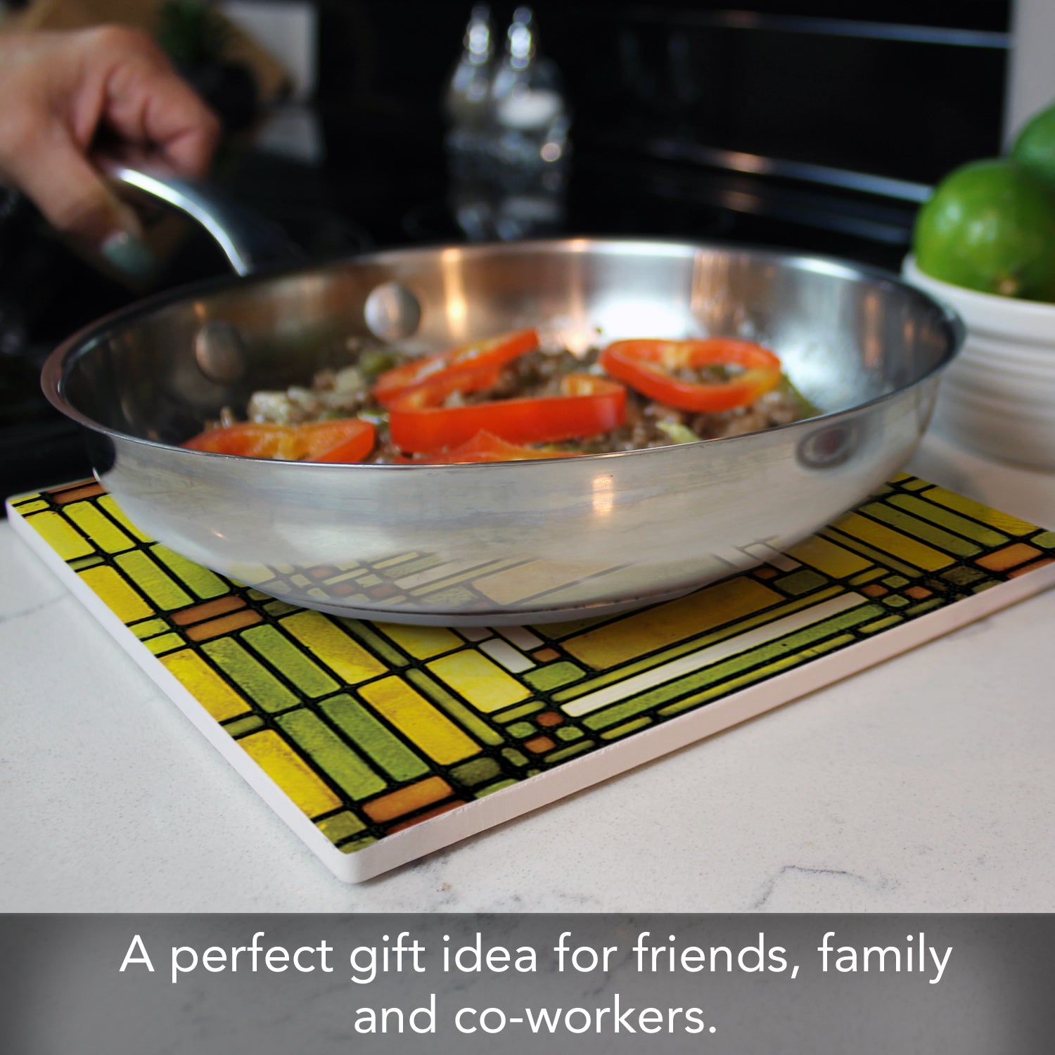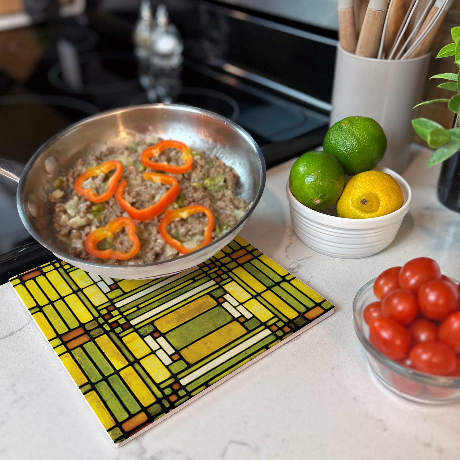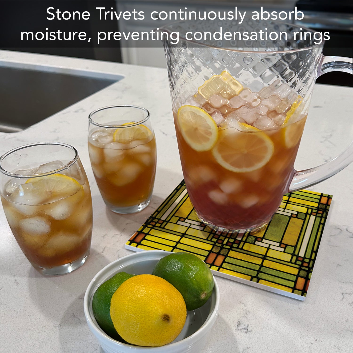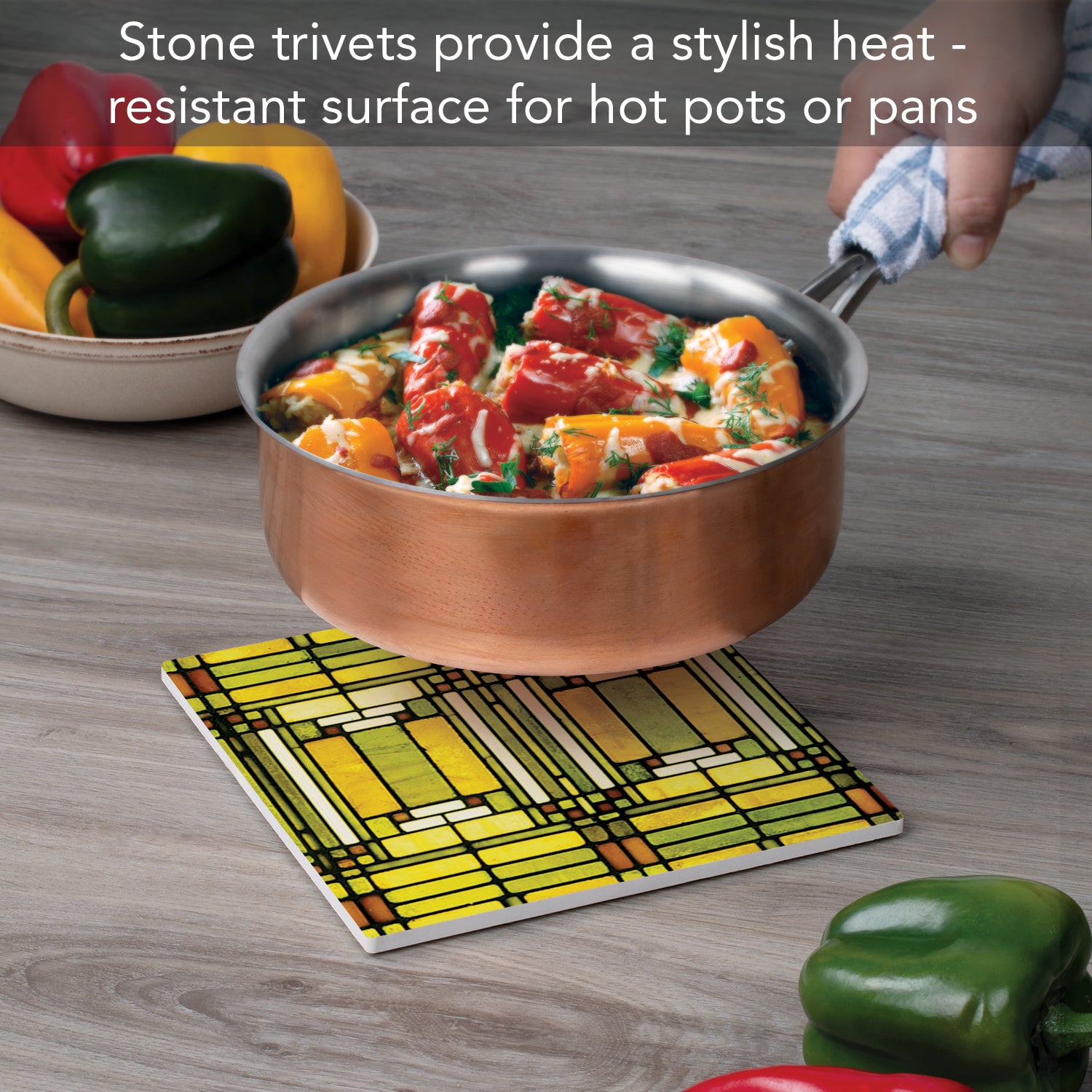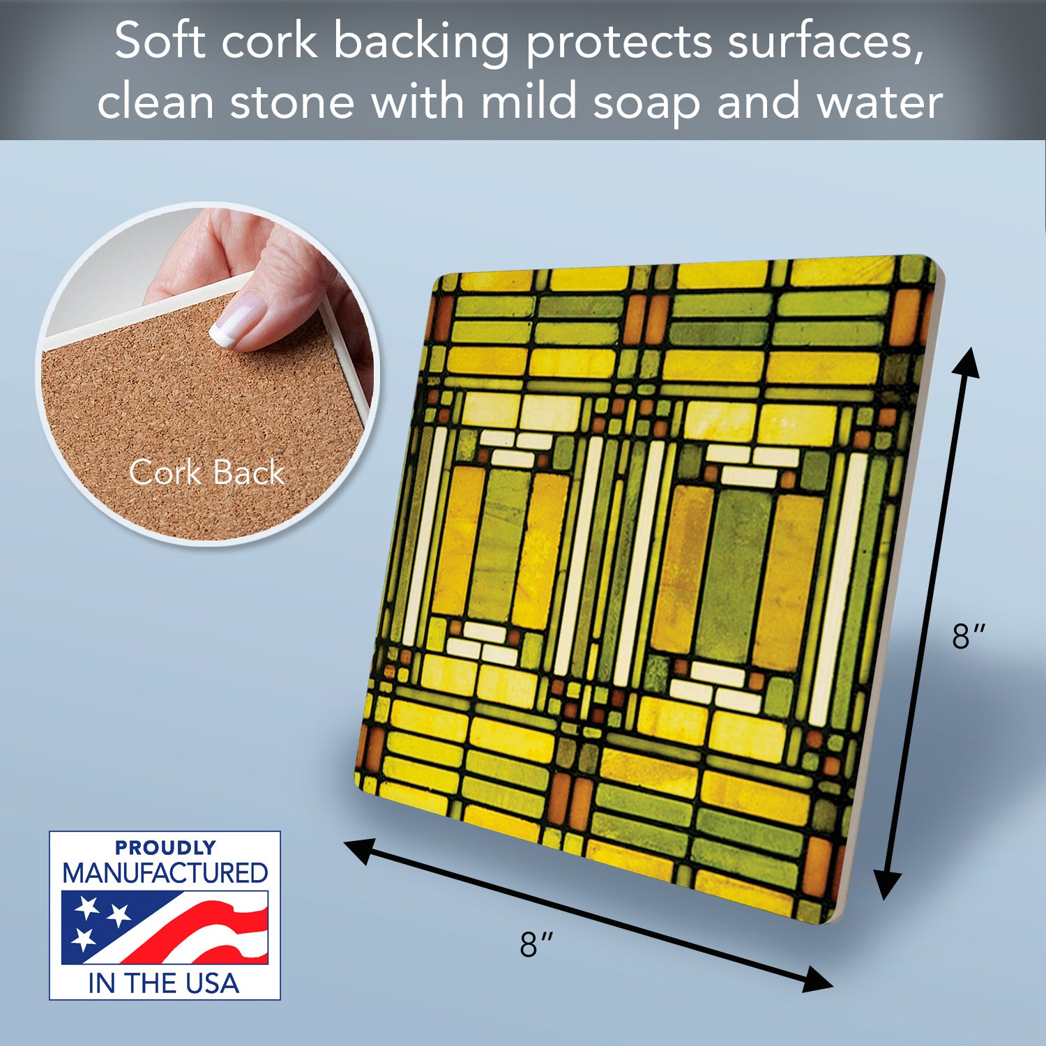 Frank Lloyd Wright's Oak Park Skylight Design on 8" Square Stone Trivet Manufactured in the USA
