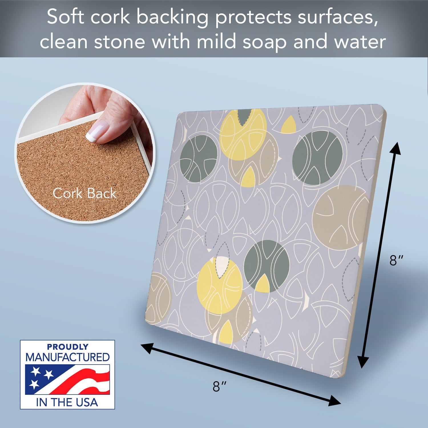 CORK BACKING-Each Trivet has an attached Non-Skid Cork Backing. Cork backing assists in keeping the Trivet stabilized when in use. Cork backing also protects your surfaces from scratches and stains.